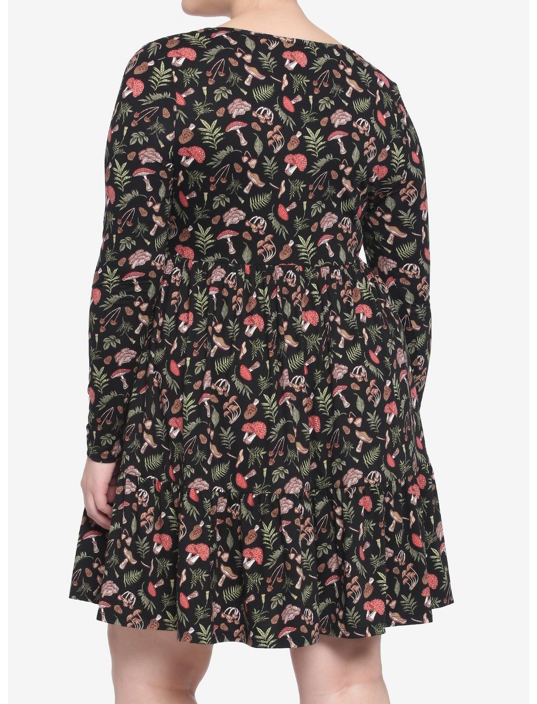 Woodland Mushroom Tiered Long-Sleeve Dress Plus Size