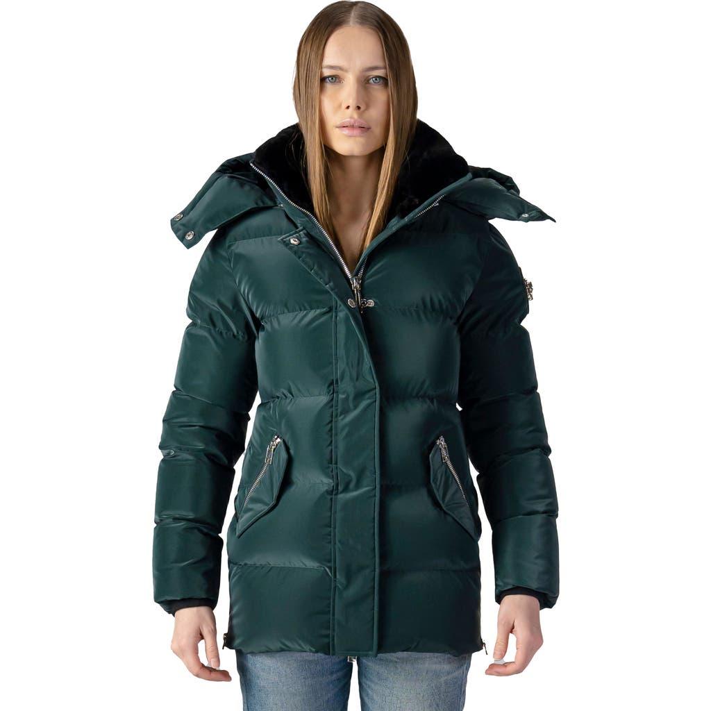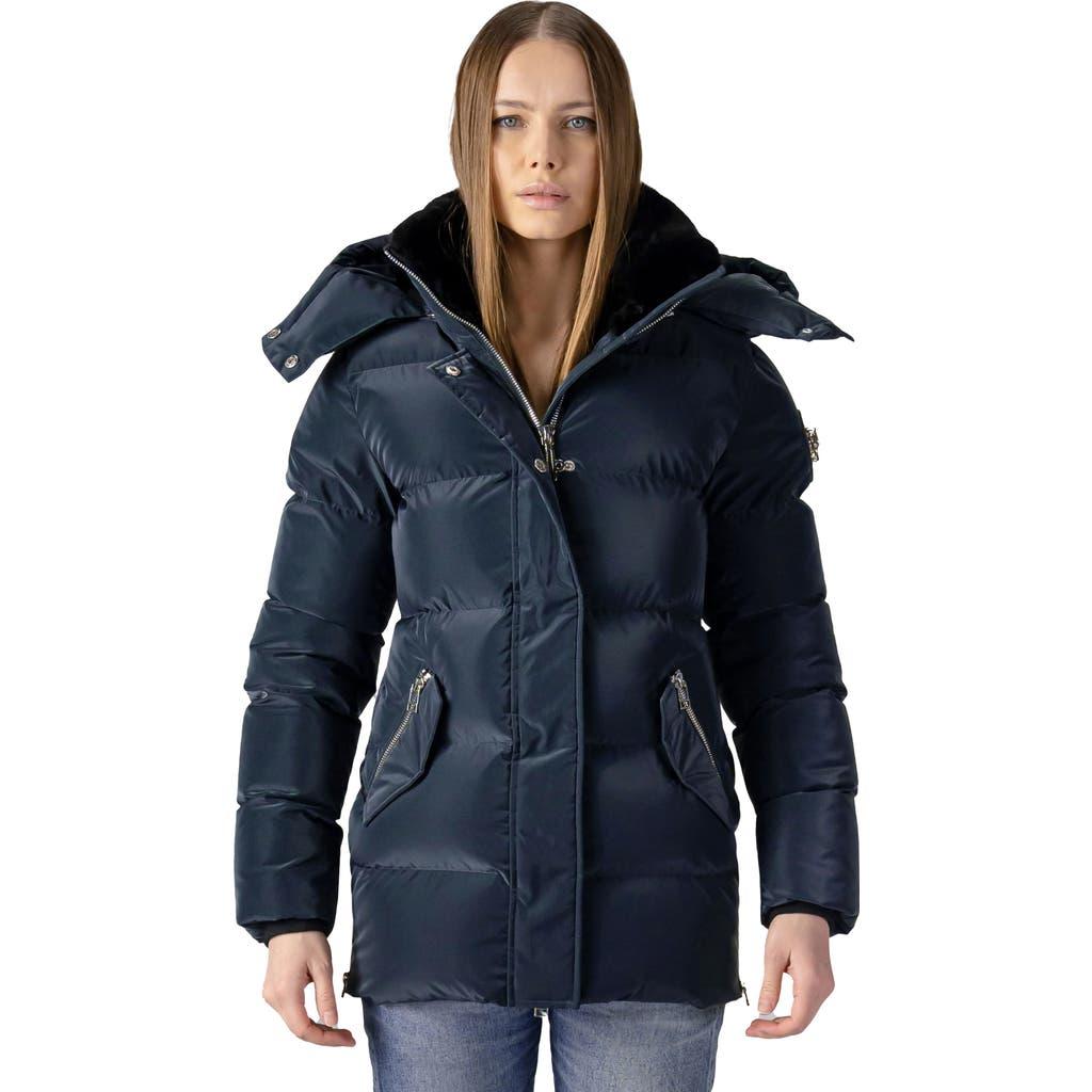 Women's heavy weight ¾ length winter coat canadian designed premium outerwear. Warmth and style, cruelty free. Wind tested, water resistant 100% polyester outer shell Bio based sustans ® fiber insulation, faux fur lined inner collar Easy arm movement with back vents, detachable hood, premium YKK zippers Premium pocket linings, wolf emblem on sleeve Keeps warm down to - 22°f