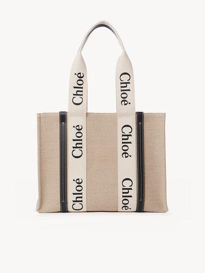 Woody Small Tote Bag in Linen with Crossbody Strap