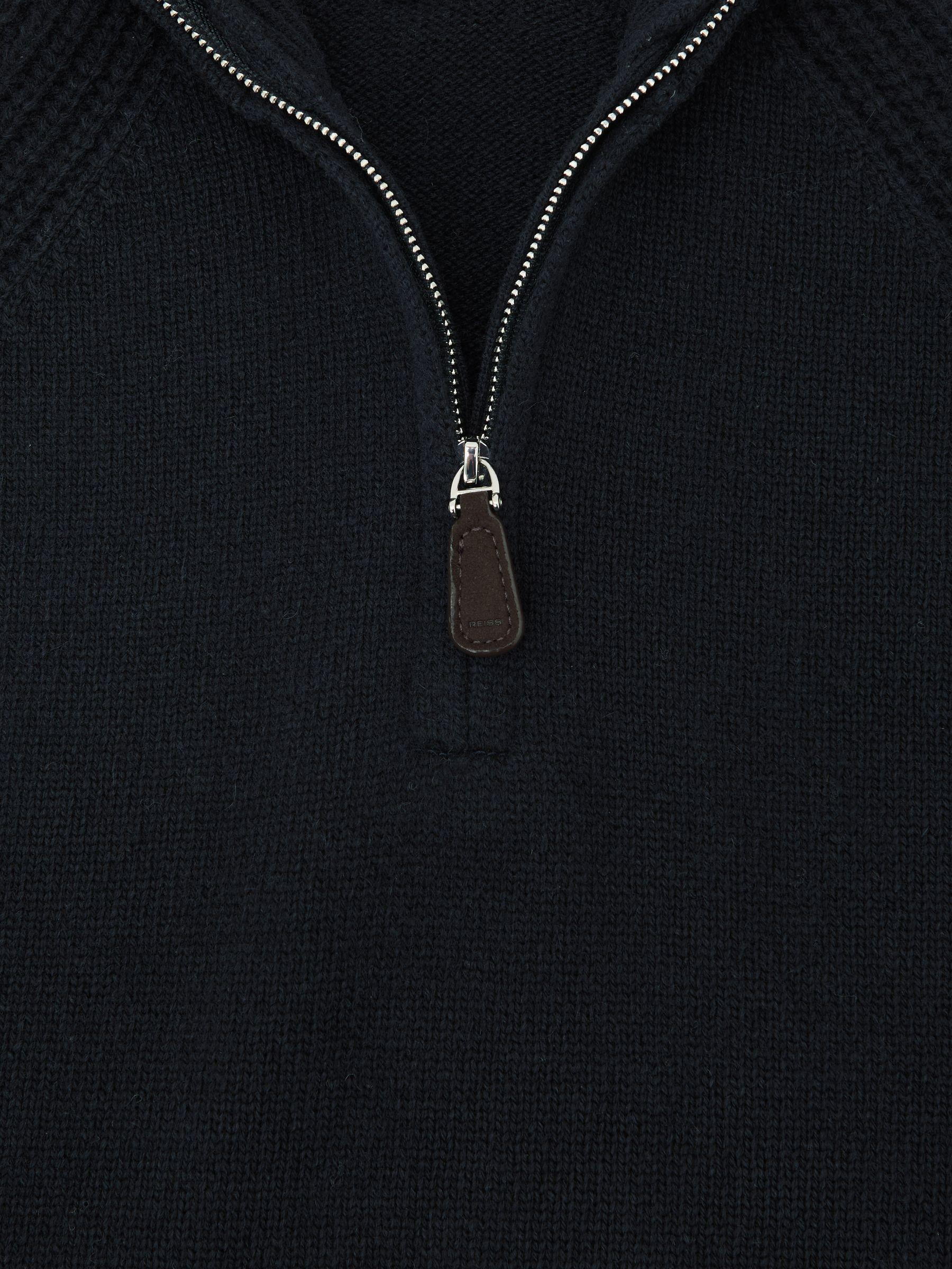 Crafted from a wool and cashmere blend, the Charming jumper has a luxuriously soft feel. Raglan sleeves and a half-zip opening with a zipper pull add sporty influences, with ribbed details introducing a touch of texture. Wool and cashmere blend Half-zip Long sleeves Ribbed neck, hem, and cuffs.