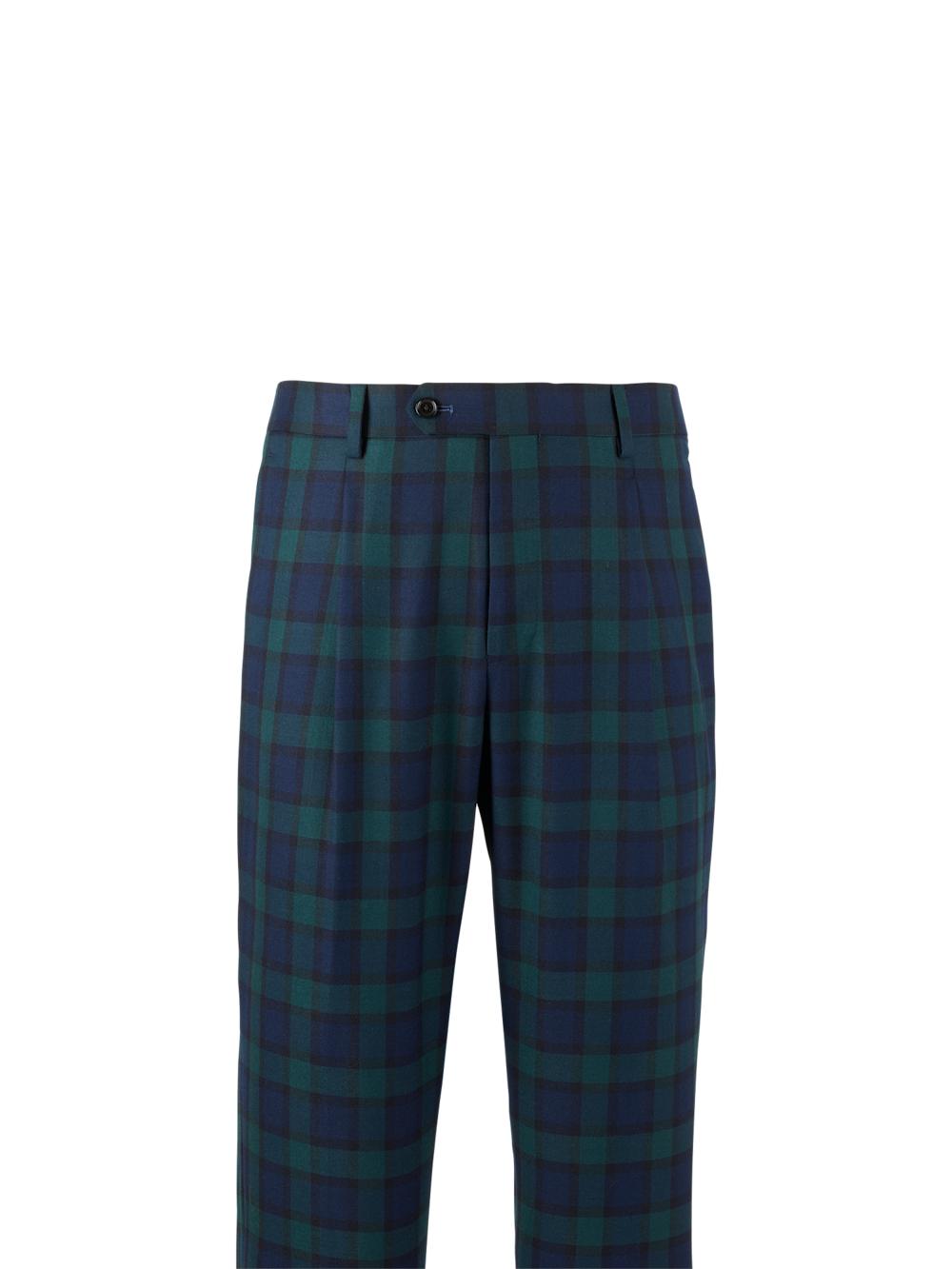 Wool Blend Blackwatch Single Pleated Pant - Green/navy