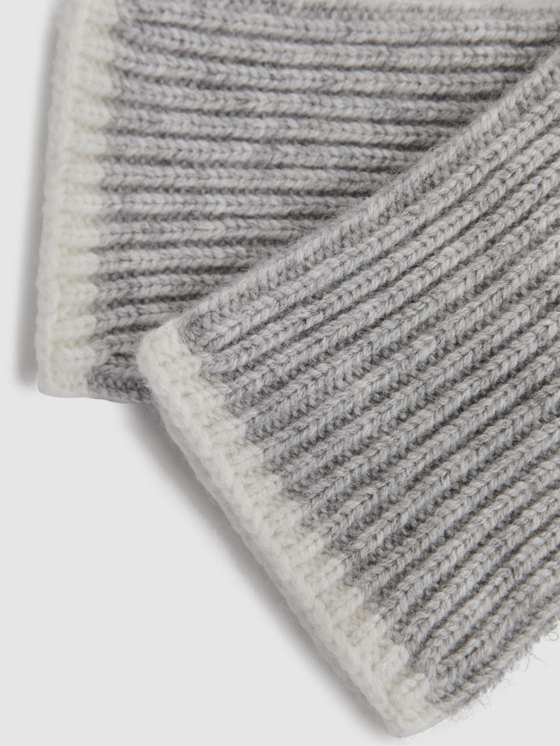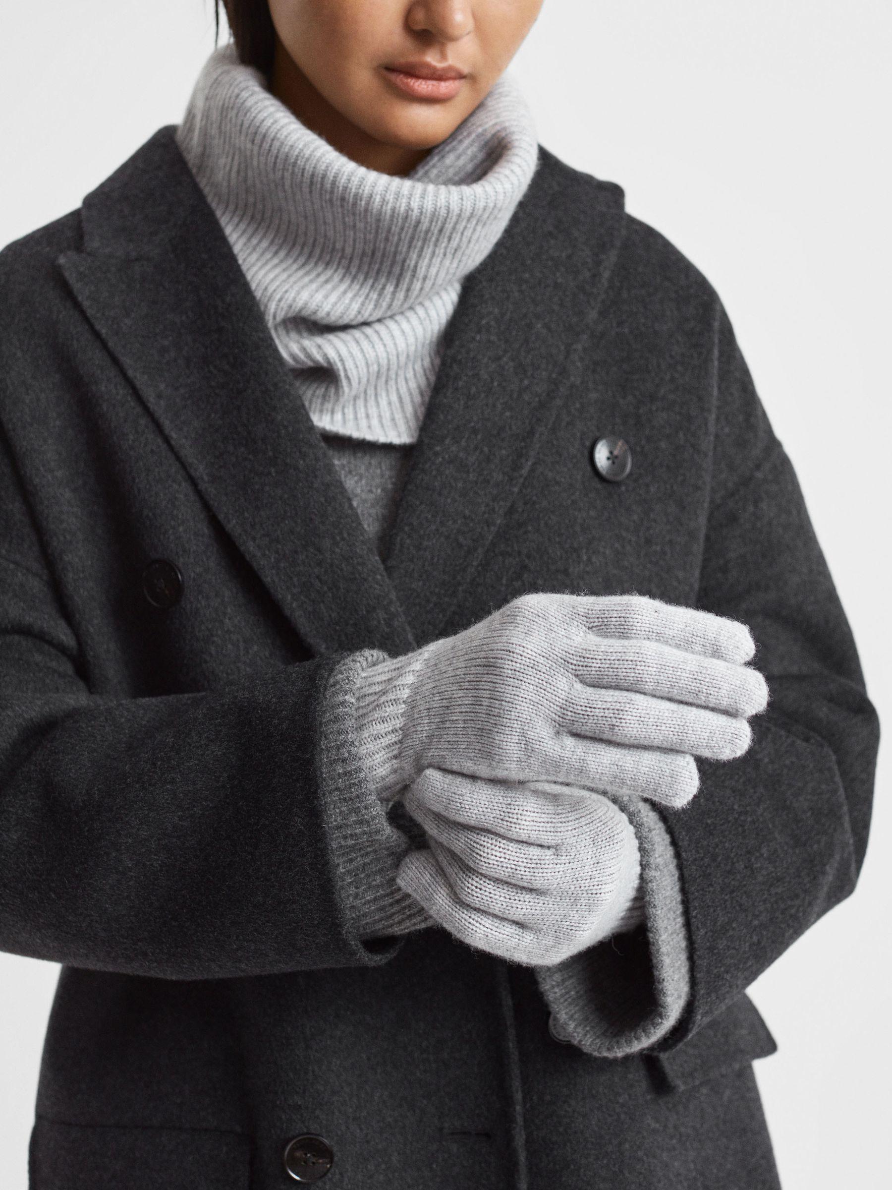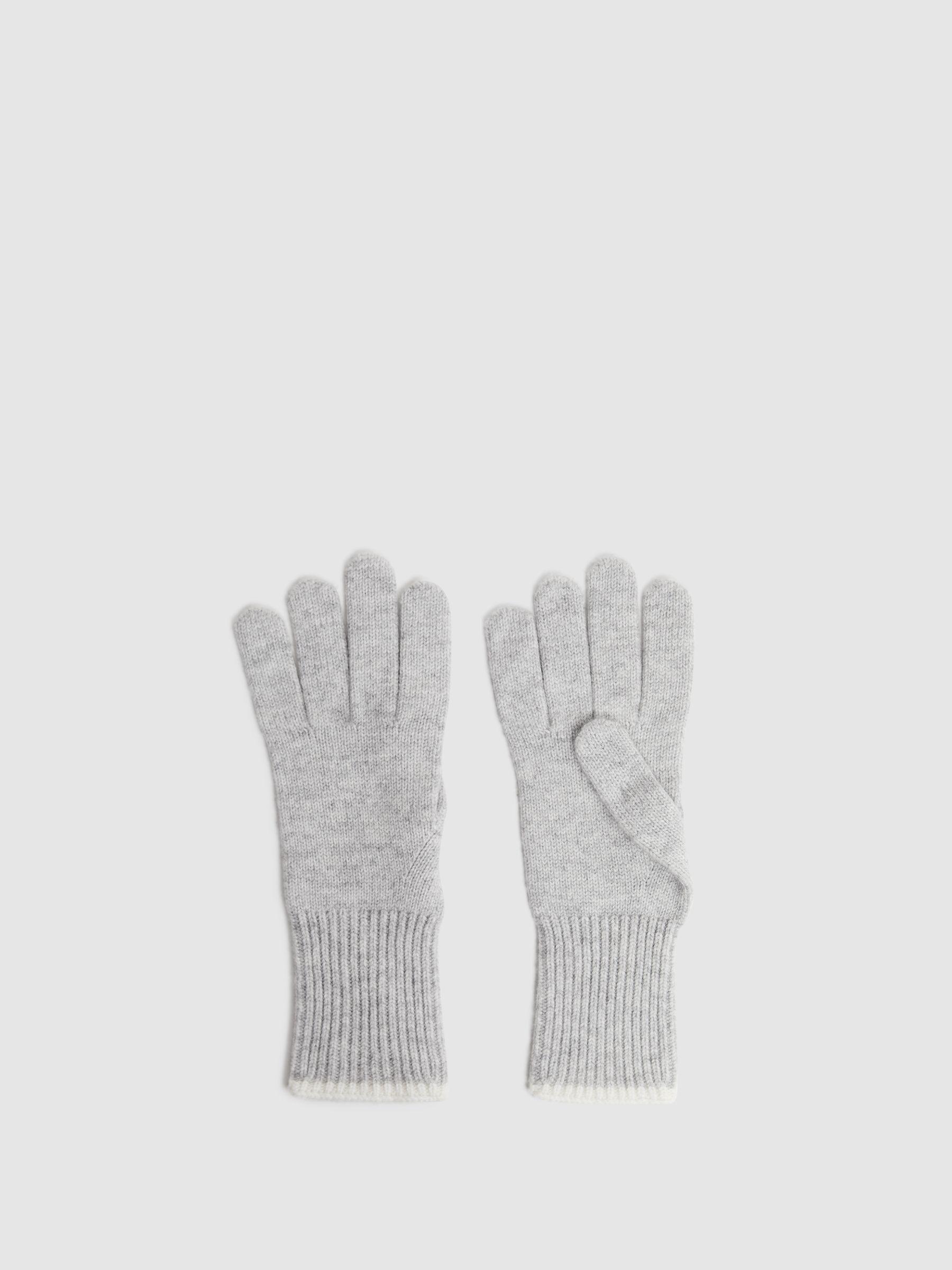 Wool Blend Contrast Trim Gloves in Grey/Ecru