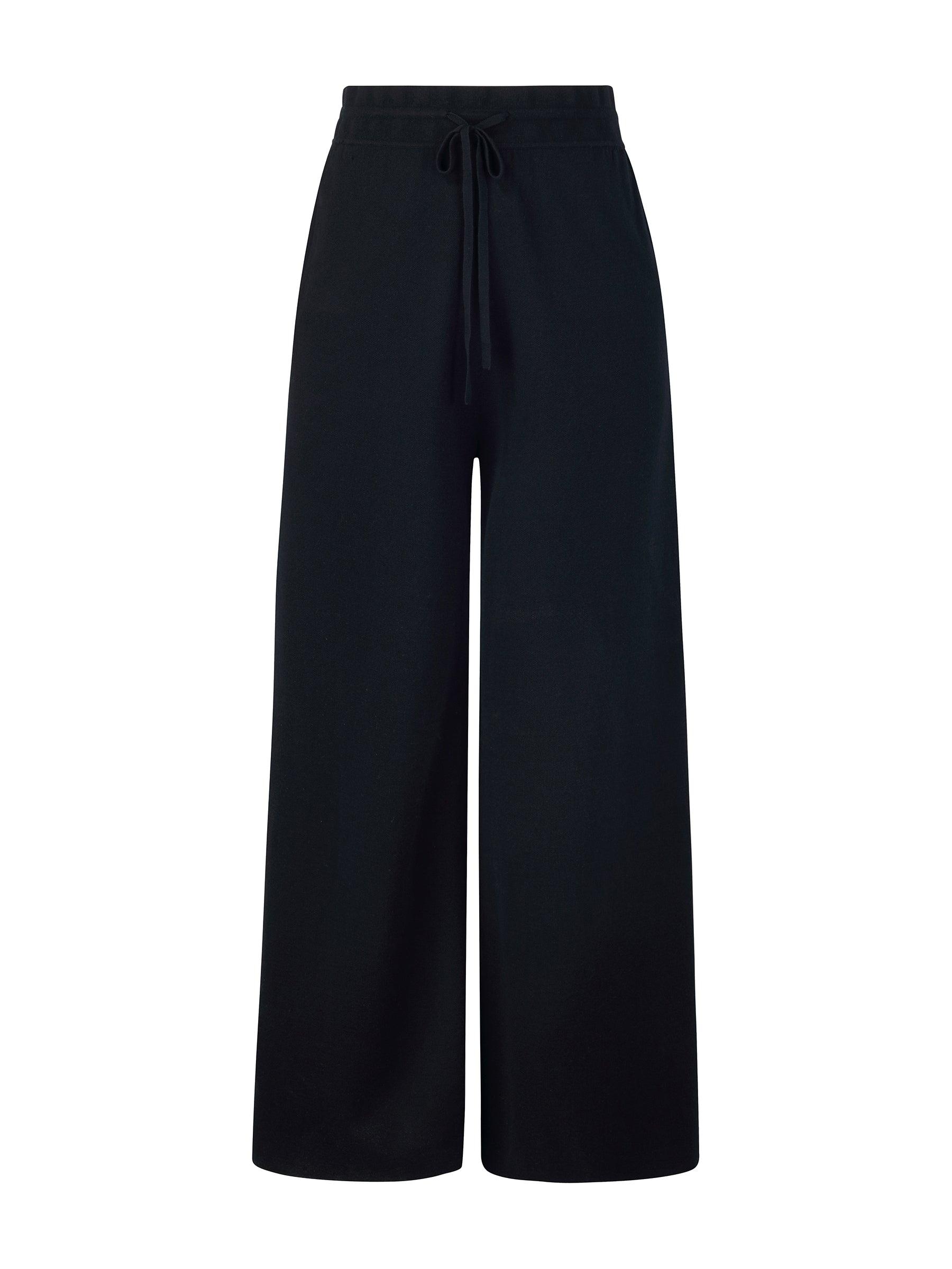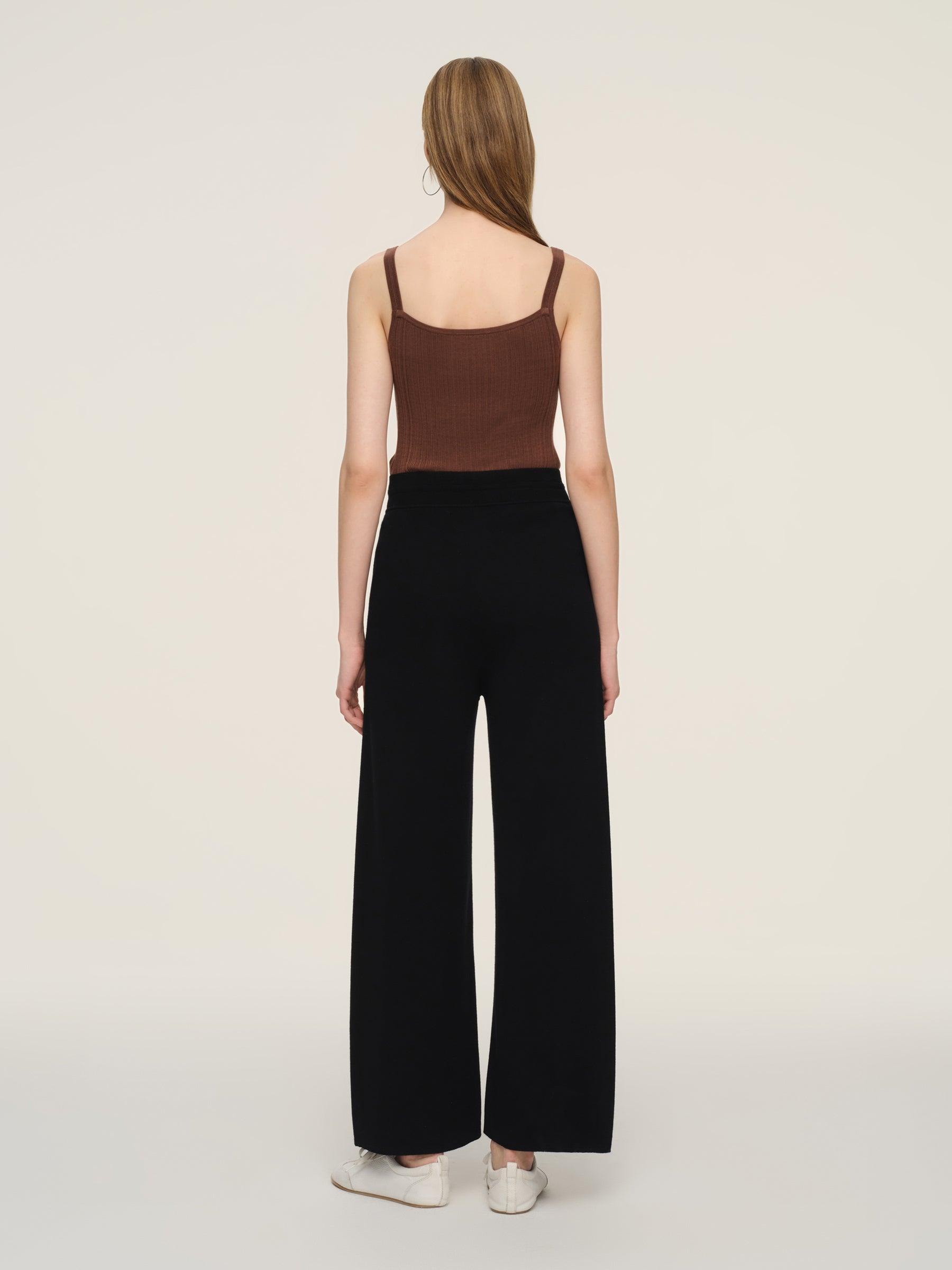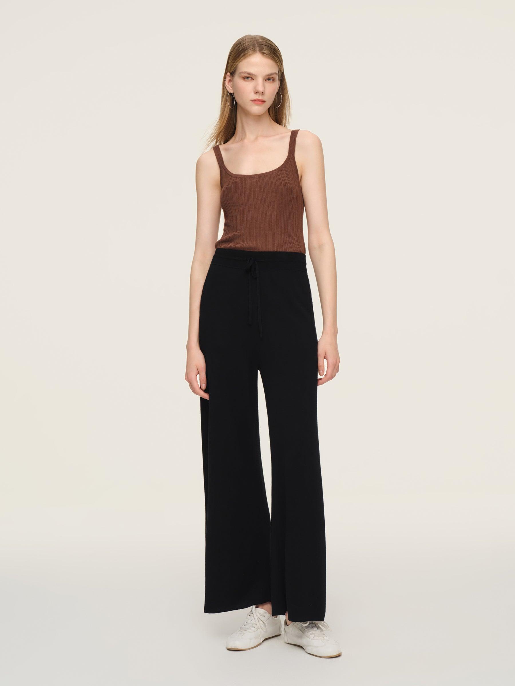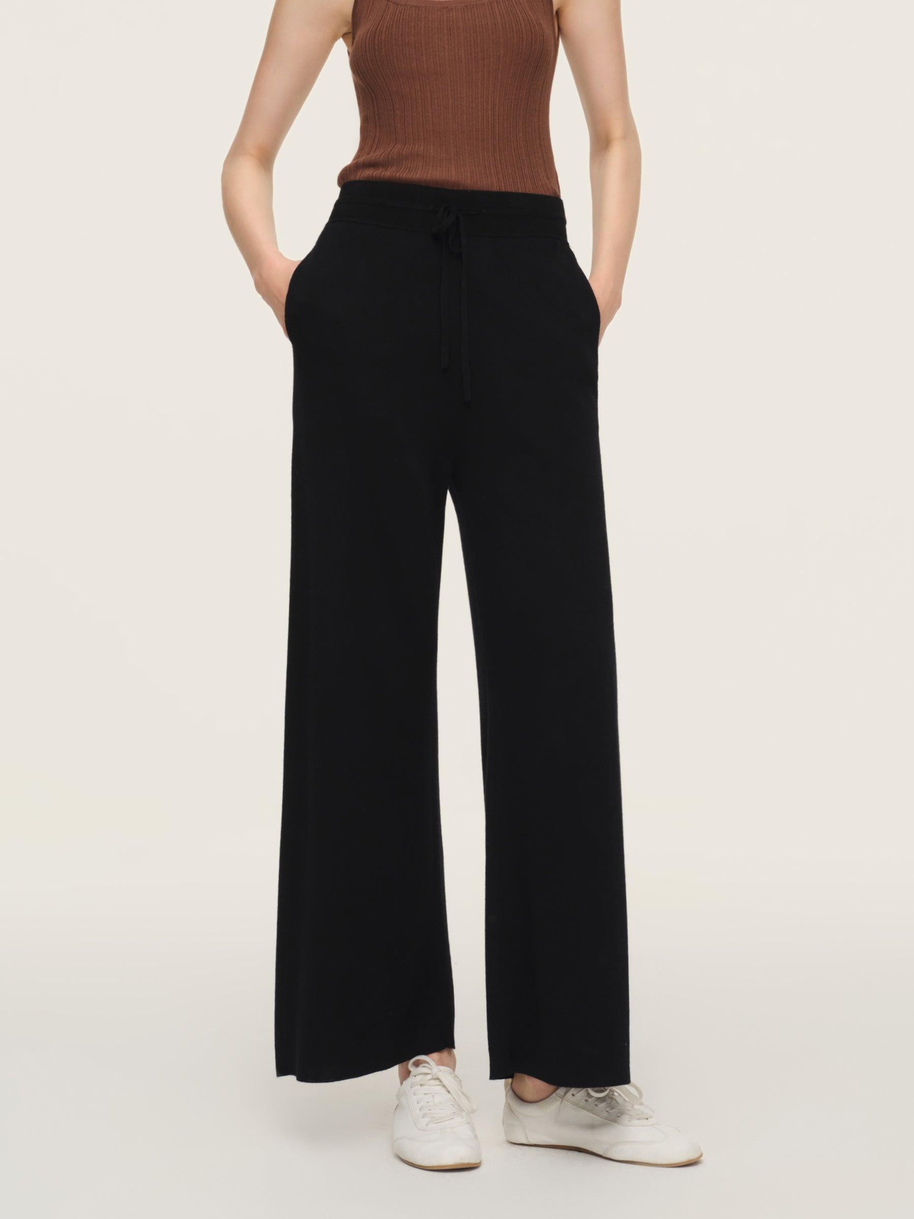 -Wool blend -Straight wide leg pants -With pockets These wool-blend knit pants feature a sophisticated wide-leg silhouette and functional side pockets for ultimate comfort. Designed with a versatile drawstring waistband that can be styled internally or externally, they offer a customizable fit. Perfect for autumn and s
