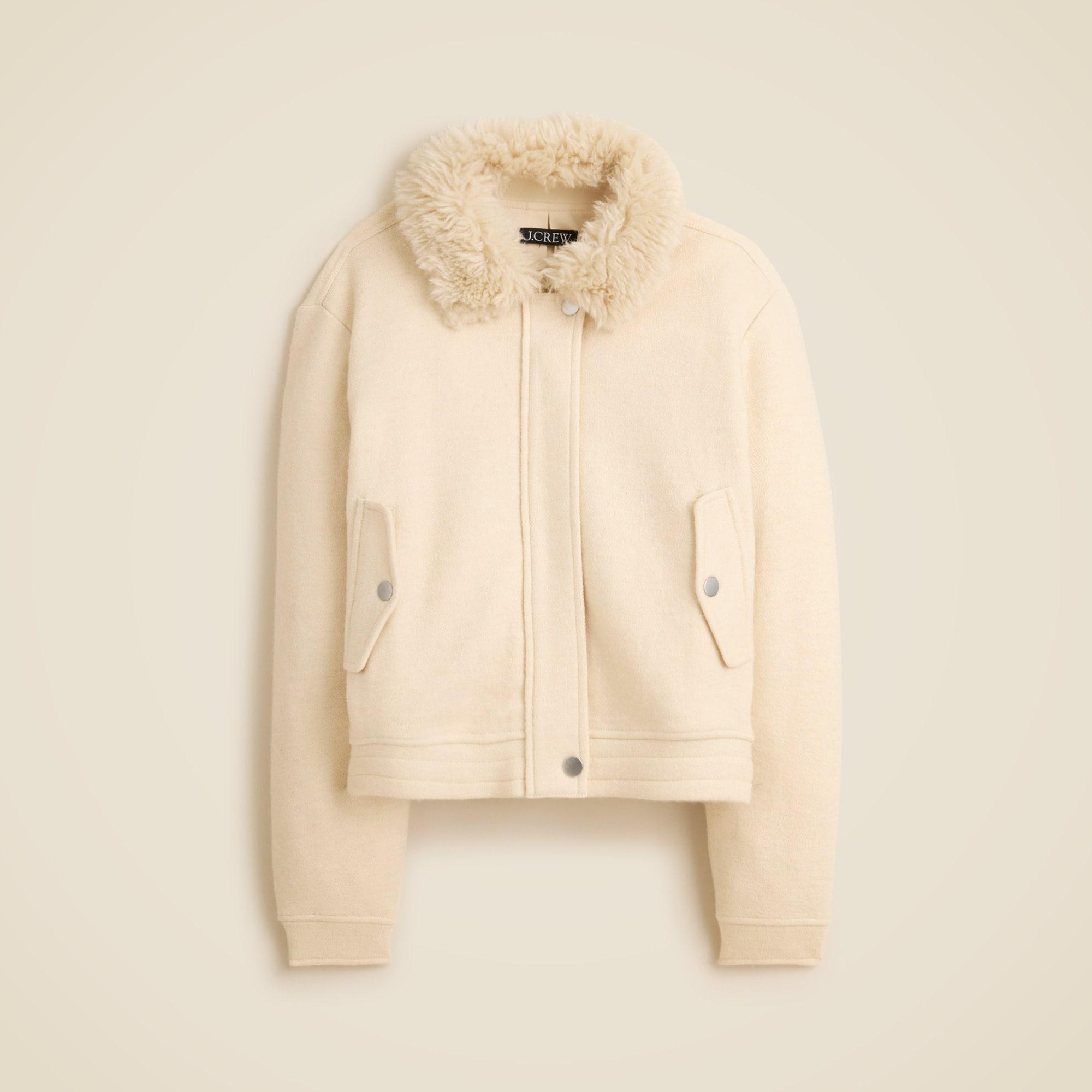 Wool-blend flight jacket with faux-fur collar for women - Find the best selection available in-stores and online at J.Crew.