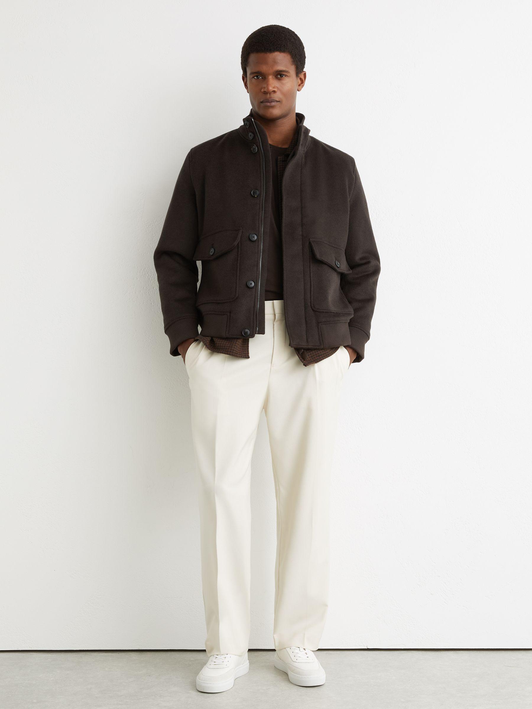 Wool-Blend Funnel-Neck Bomber Jacket in Chocolate Brown