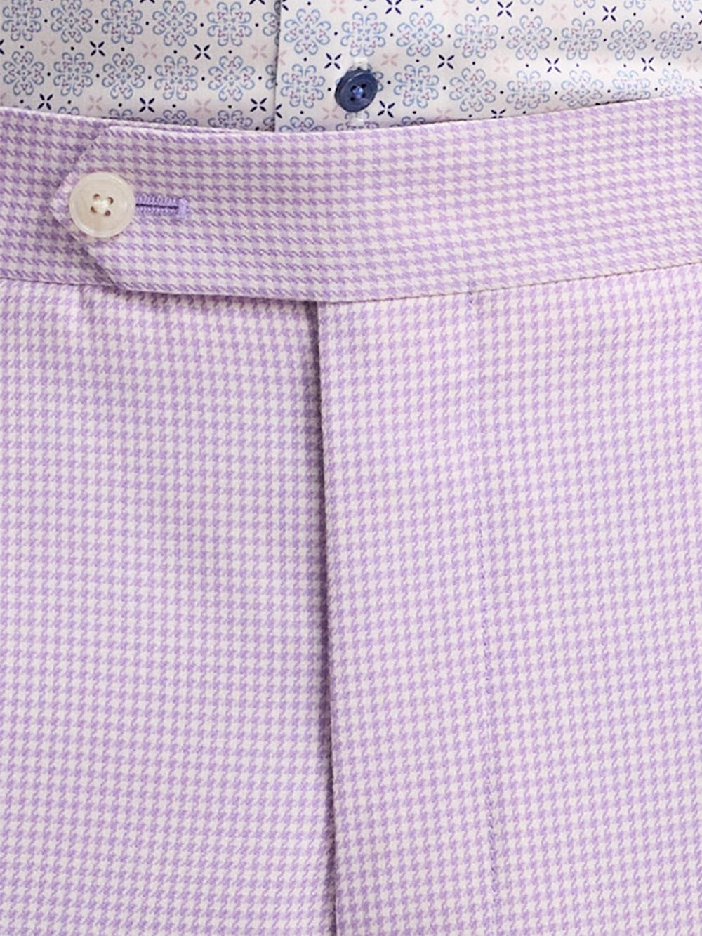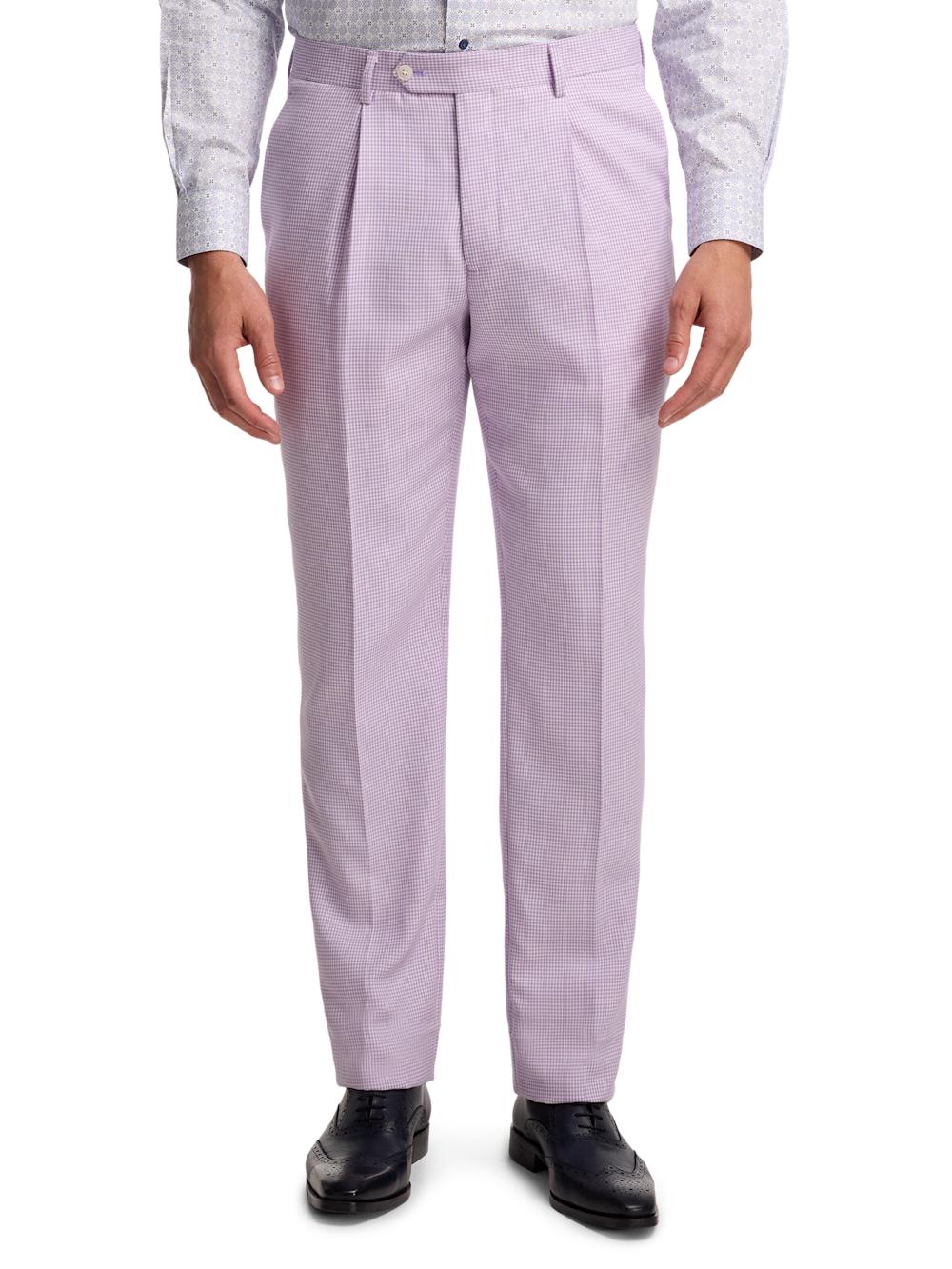 Features Single Reverse Pleats, Lined To The Knee Unhemmed French Fly With Mitered Extended Tab Button Closure Front Quarter Top Pockets, Back Button-thru Besom Pockets Tailored Fit Content & Care 70% Wool, 30% Polyester Dry Clean Only Imported Style# RPW001T