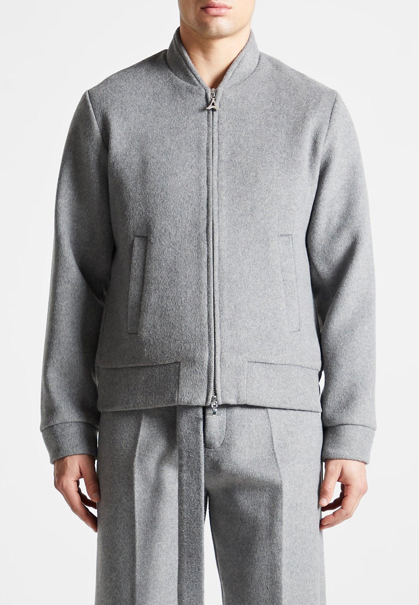 Featuring a bomber silhouette, this wool blend marl bomber jacket in a staple light grey is the perfect way to stay warm in ultimate comfort and style. Crafted from a sumptuous wool blend. Complete the look with our Wool Belted Trousers. Bomber Silhouette Two Welt Pockets on Front Internal Welt Pocket Elasticated Back Hem Satin Lining Manière De Voir Silver Plaque on Back Manière De Voir Silver Eiffel Zip 30% Wool / 70% Polyester / 97% Polyester / 3% Elastane Always check the care label for wash instructions.