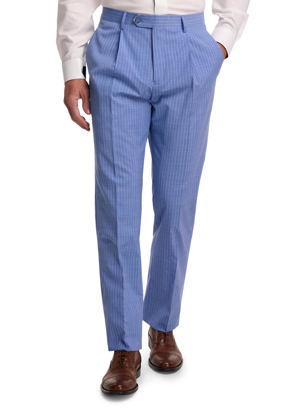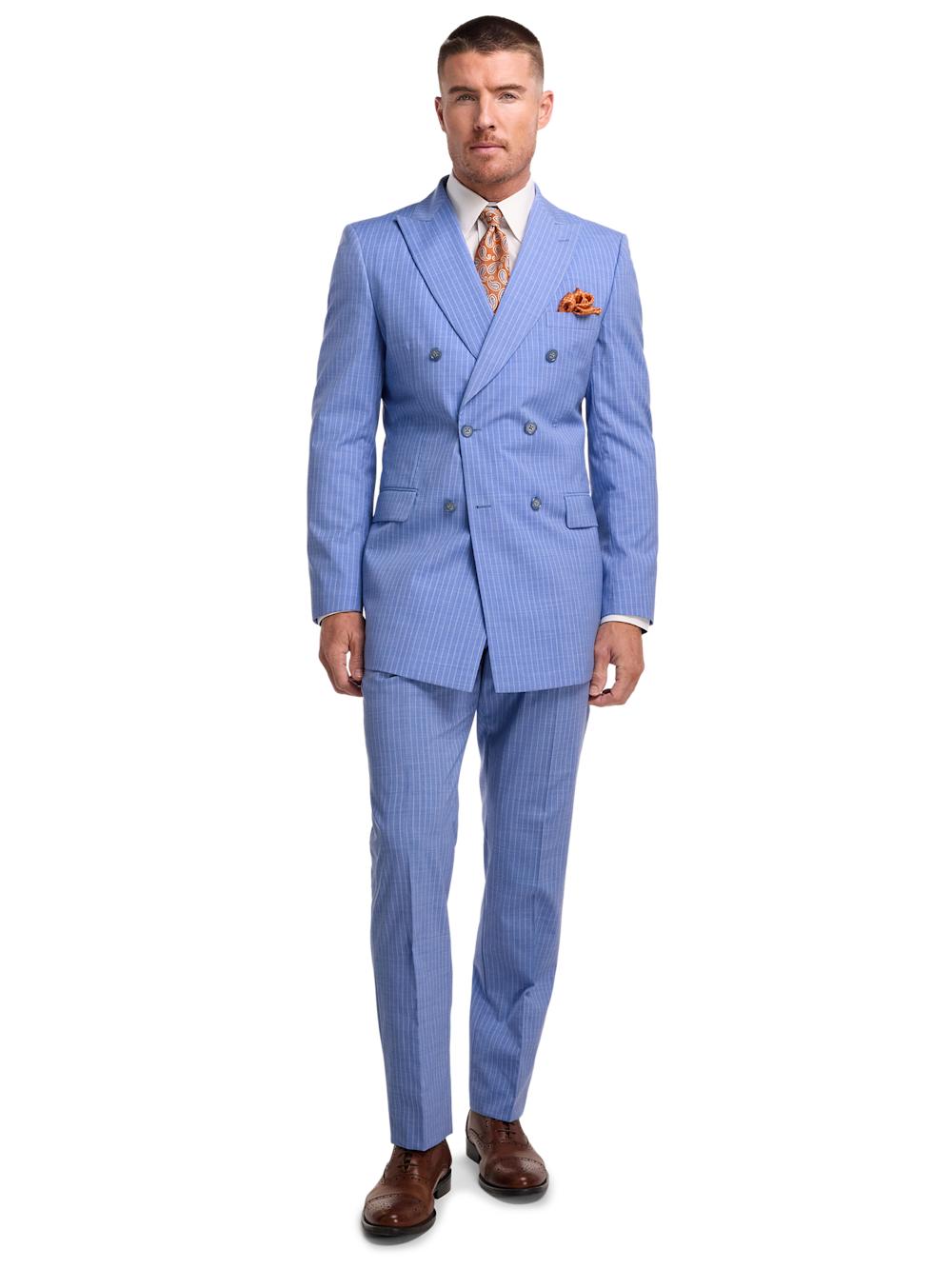 FeaturesJacket Six-on-two Double-breasted Front, Side Vent, Peak Lapel Fused Construction, Comfort Stretch Armhole Fully Lined With Straight Facing Two Straight Flap Besom Pockets, Welt Breast Pocket, Three Inside Pockets Pant Lined To The Knee Unhemmed French Fly With Mitered Extended Tab Button Closure Front Quarter Top Pockets, Back Button-thru Besom Pockets Content & Care 70% Wool, 30% Polyester Dry Clean Only Imported Style# RPW300J, RPW003T