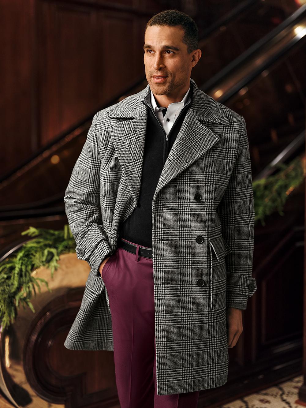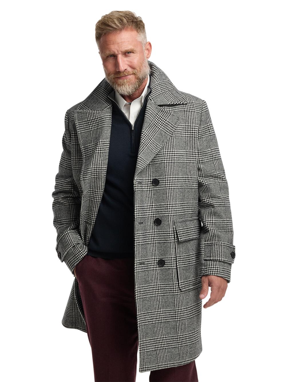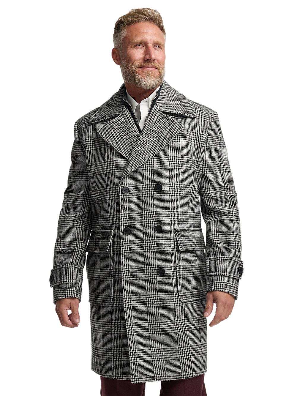 Wool Blend Plaid Double Breasted Topcoat - Black/white