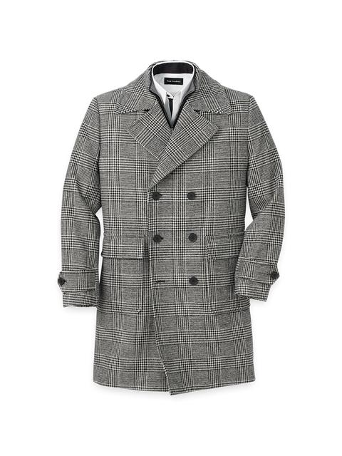 Wool Blend Plaid Double Breasted Topcoat - Black/white