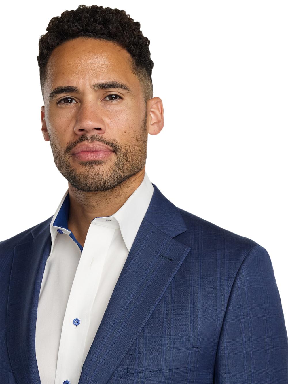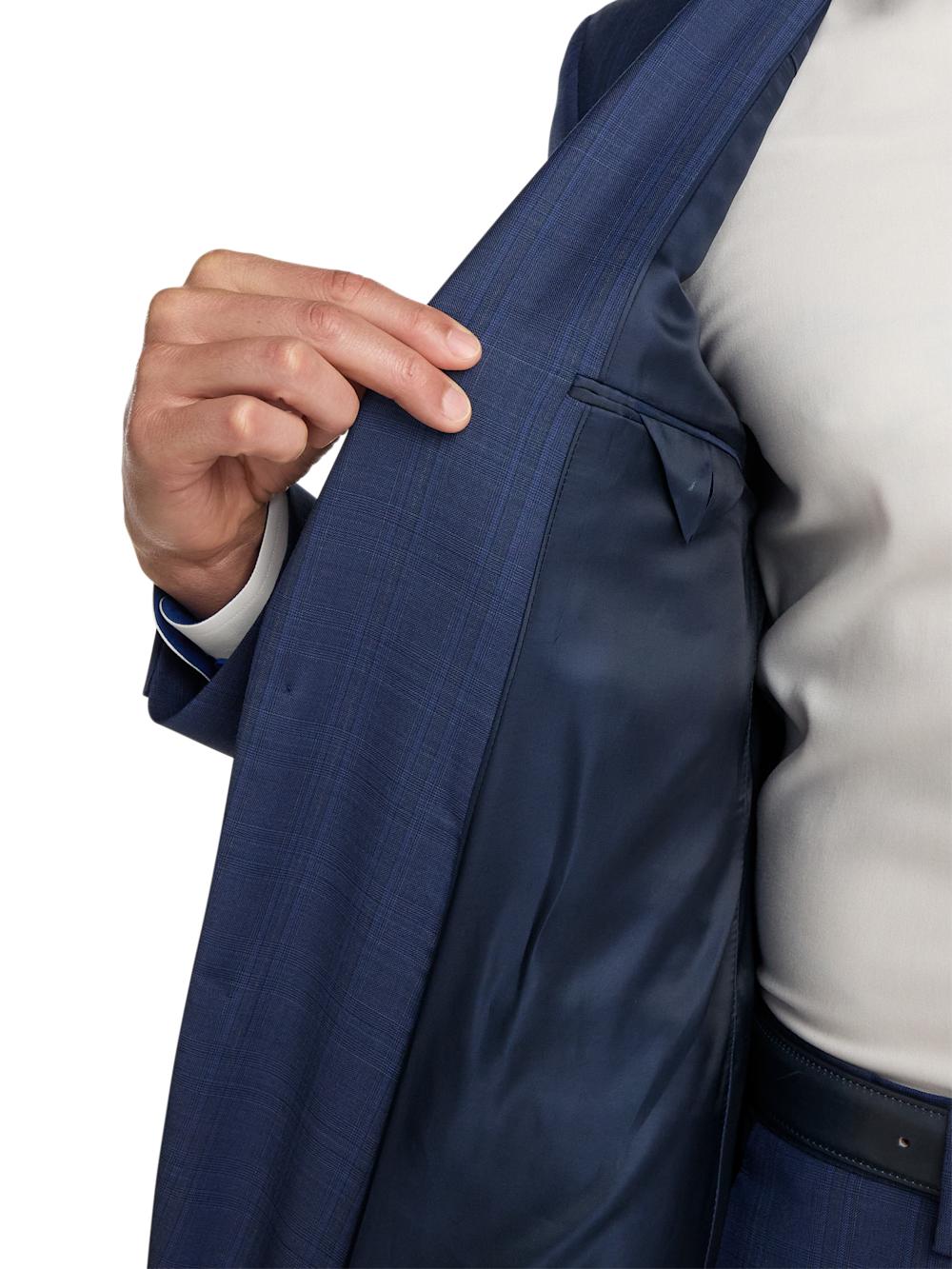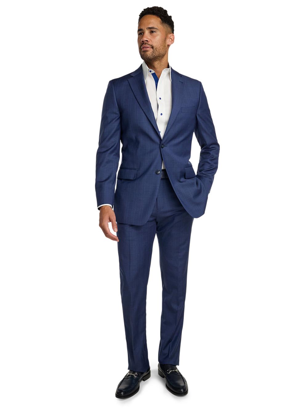 FeaturesJacket Two-button Closure, Side Vent, Notch Lapel Fused Construction, Comfort Stretch Armhole Pant Lined To The Knee Unhemmed French Fly Square Extended Tab Hook & Eye Closure Front Quarter Top Pockets Bluff Edge, Back Button-thru Welt Pockets Content & Care 97% Wool, 3% Spandex Dry Clean Only Imported Style# RMV111J, RMV111T
