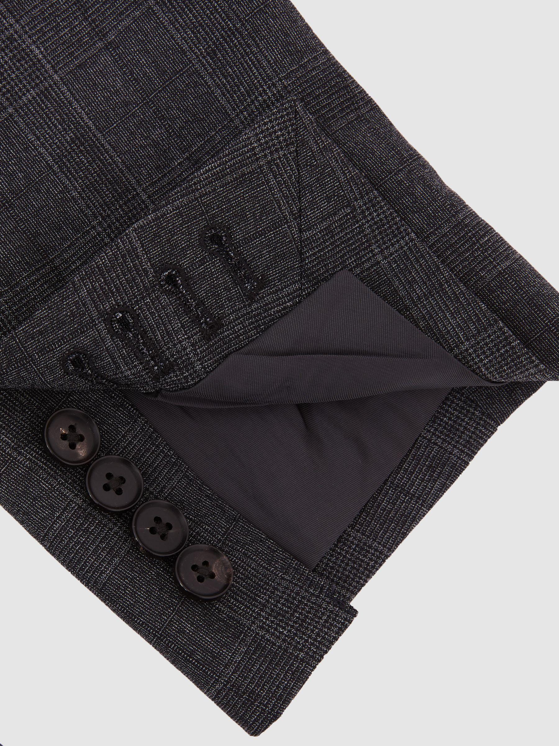 Wool-Blend Single-Breasted Check Blazer Tailored-Fit in Charcoal Grey