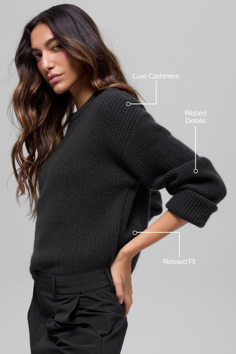 The Wool Cashmere Ribbed Noble Crewneck Sweater is soft, timeless, and effortlessly elevated. This style features a relaxed drape with ribbed cuffs and hem for subtle structure. The plush hand feel and clean finish make it the ultimate cold-weather essential. Pair it with your favorite leggings or the matching cashmere
