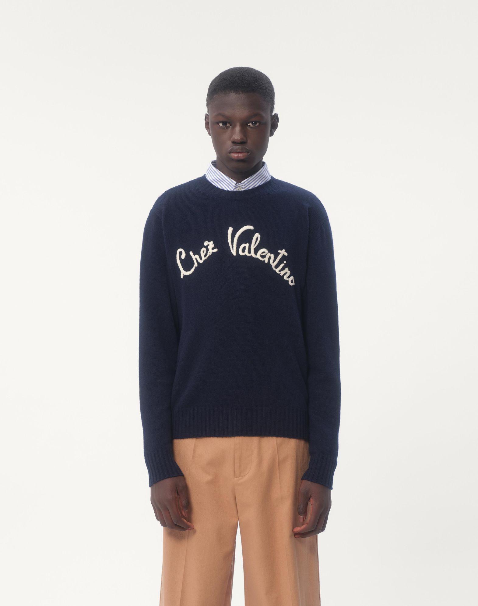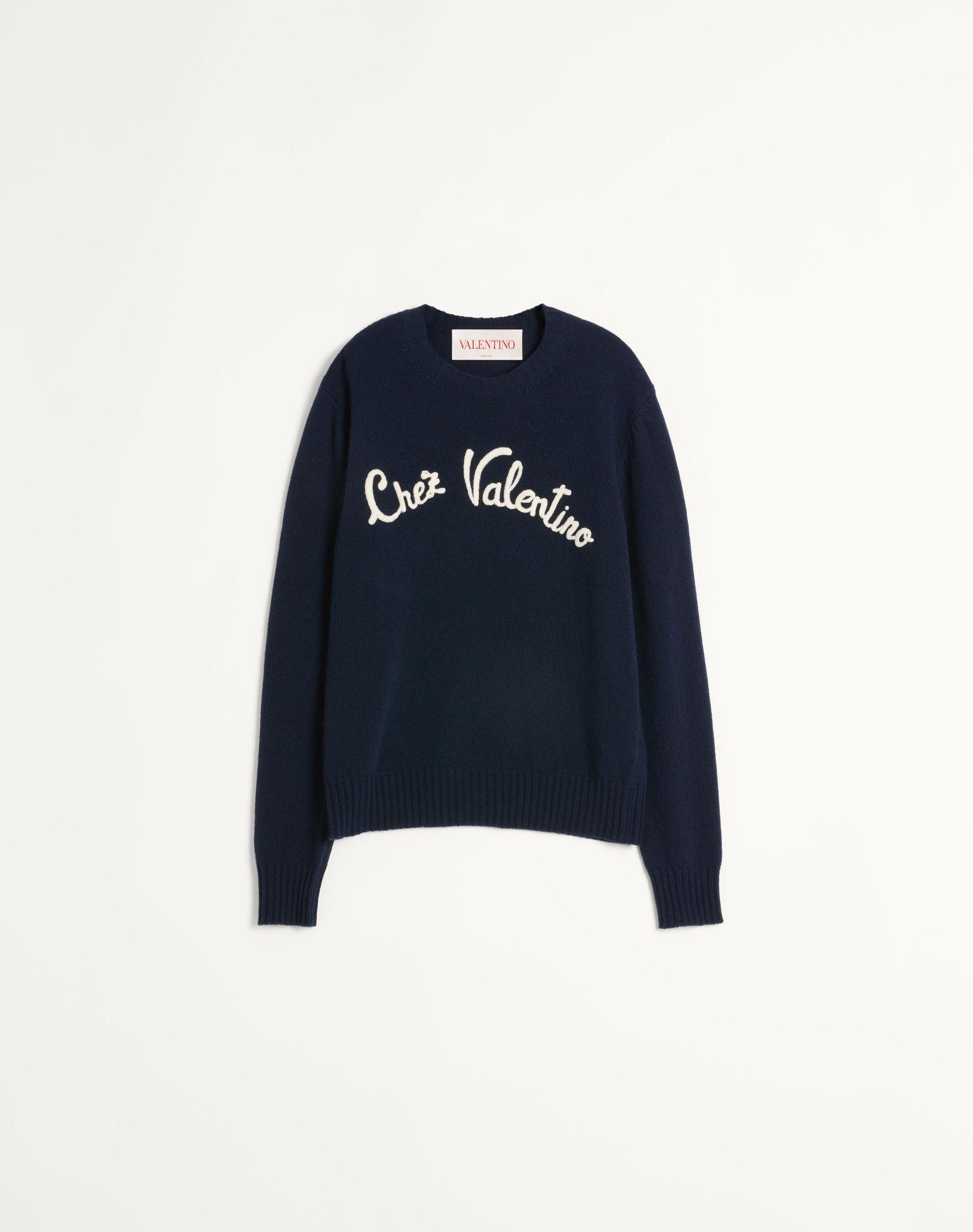 Wool Crewneck Sweater With Chez Valentino Embroidery