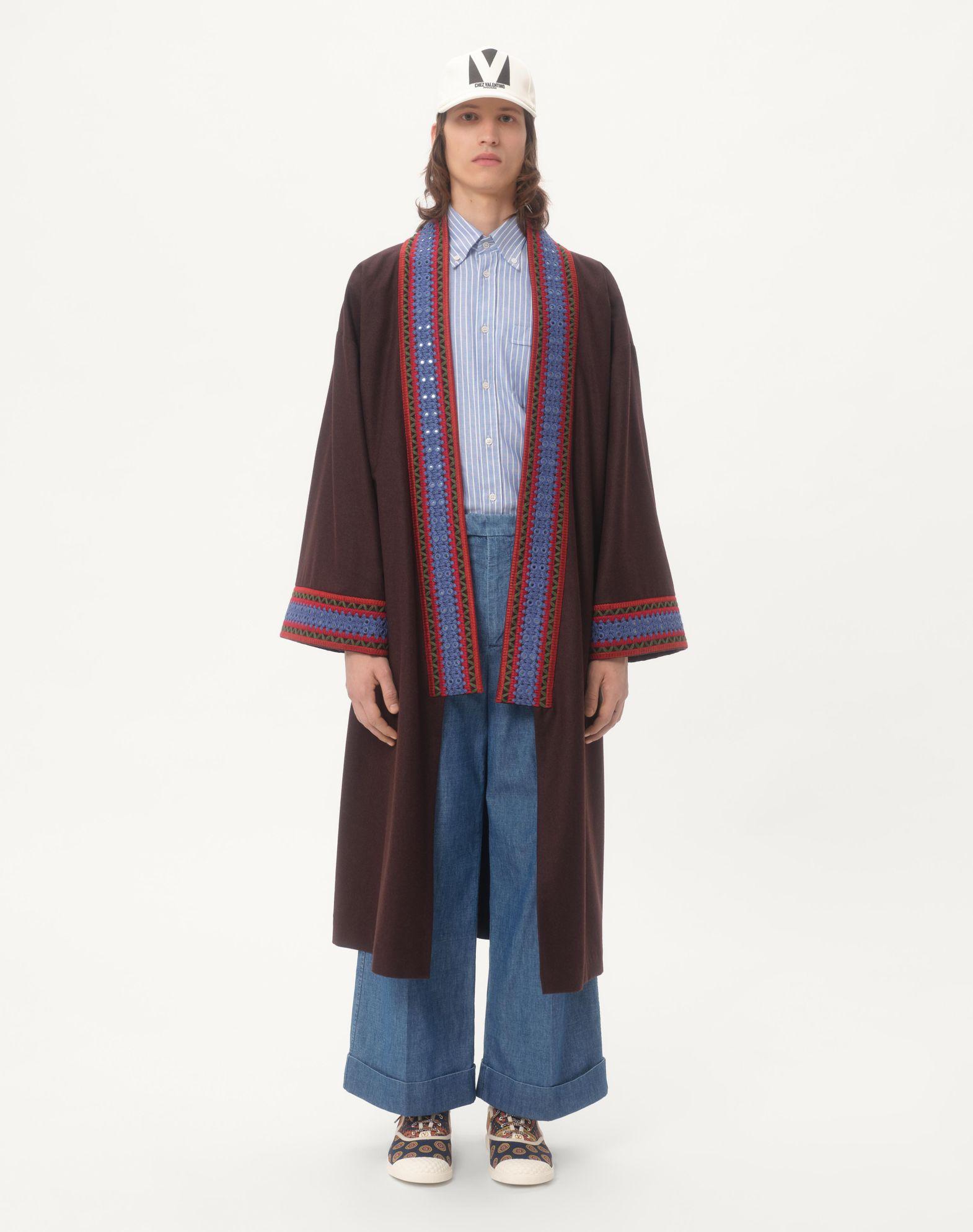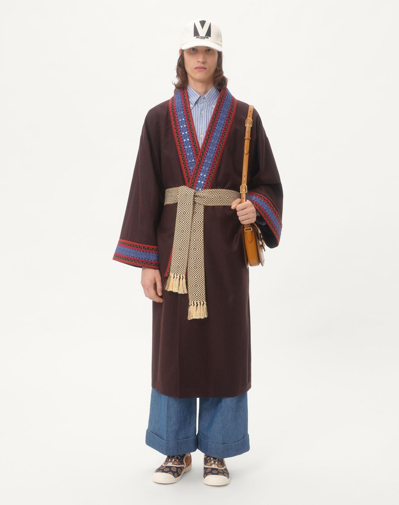 Visit the Valentino Online Boutique and discover Wool Flannel Robe Coat With Jacquard Belt for Man. Complimentary shipping and returns.