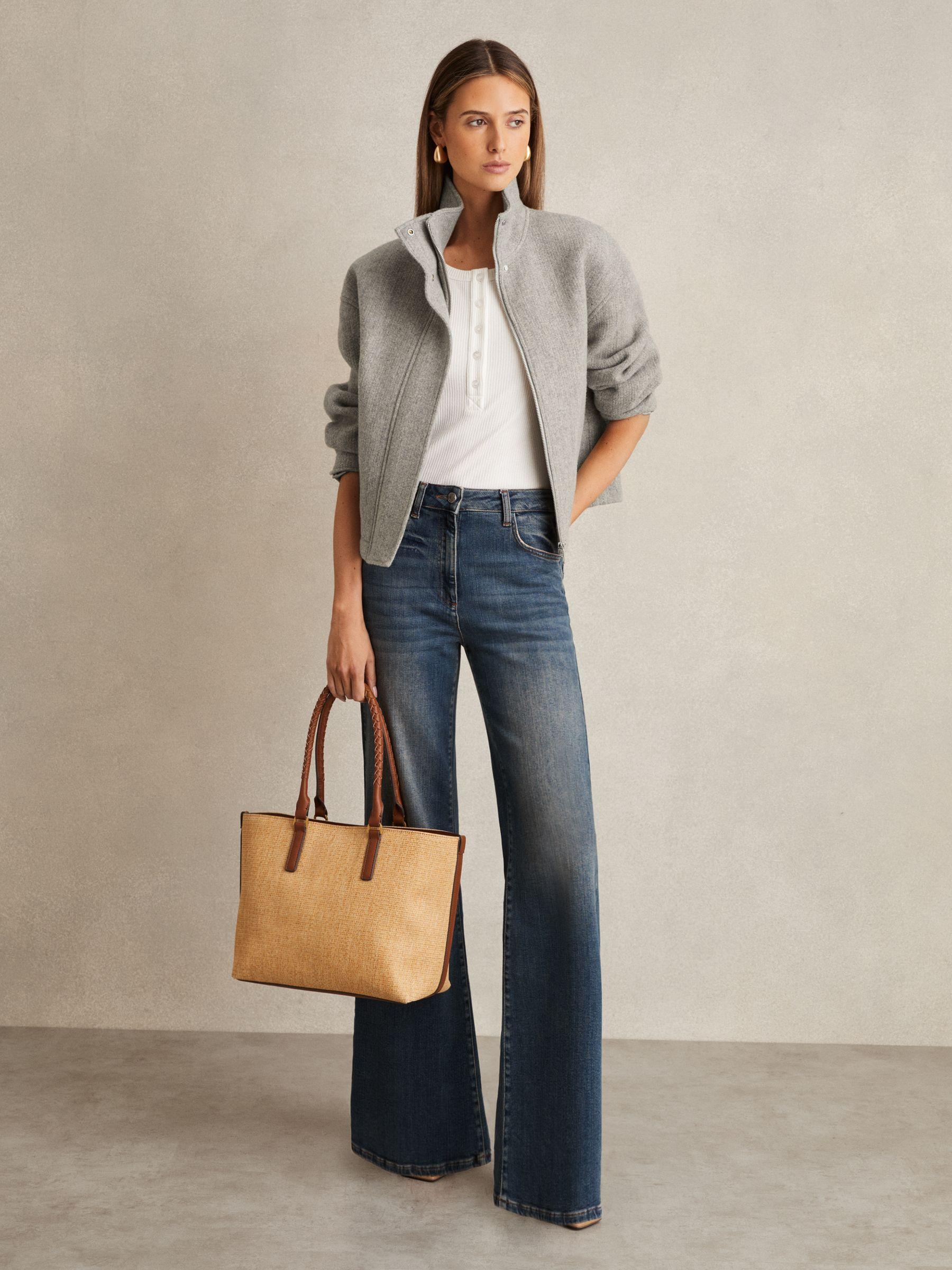 The Phillipa bomber jacket is crafted from soft wool, offering a luxurious feel and warmth. Its relaxed silhouette is enhanced by a funnel neck and drop shoulders, while the adjustable drawstring hem adds a practical, contemporary finish. 100% wool Funnel neck Diagonal welt pockets Drop shoulders Drawstring internal hem with toggle Front zip with press-stud placket