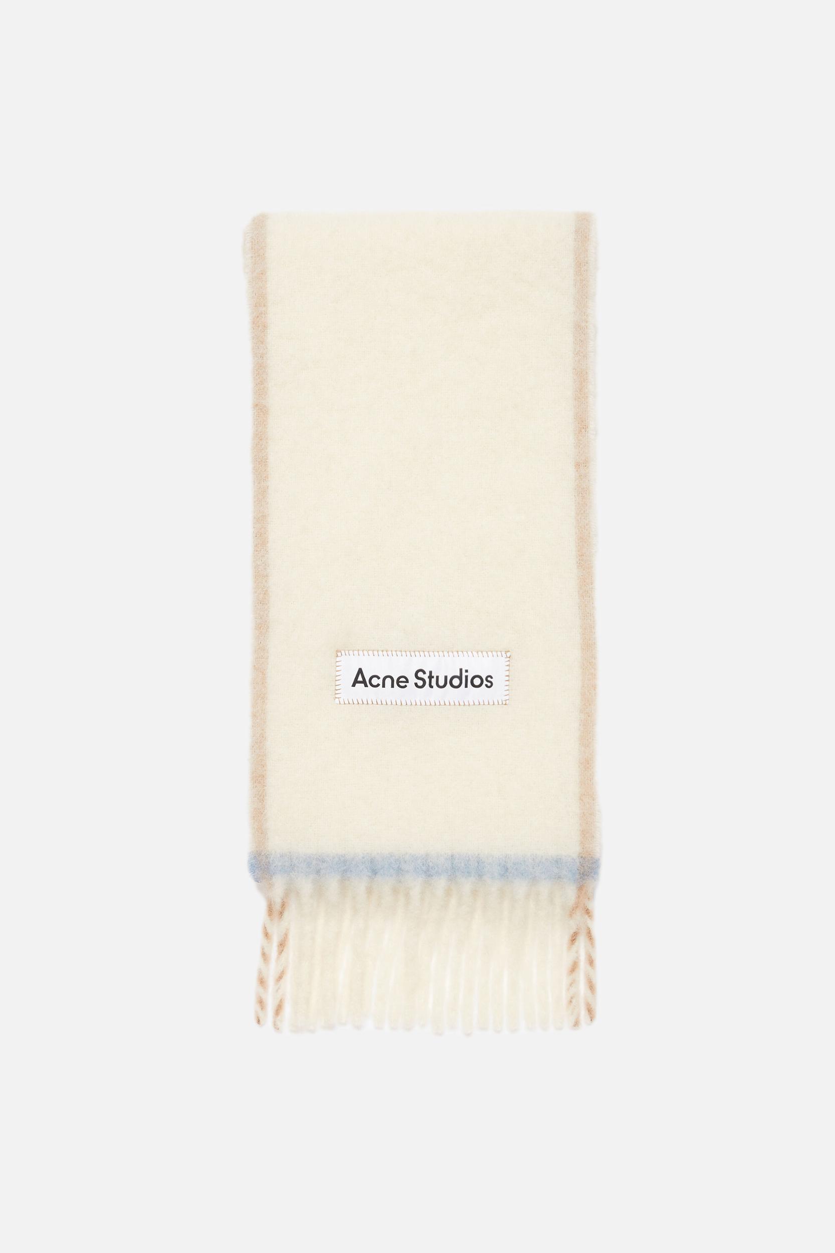 Fringe scarf is crafted from a rich wool mohair blend, detailed with an Acne Studios embroidered logo label and weaved contrast framing. FN-UX-SCAR000328
