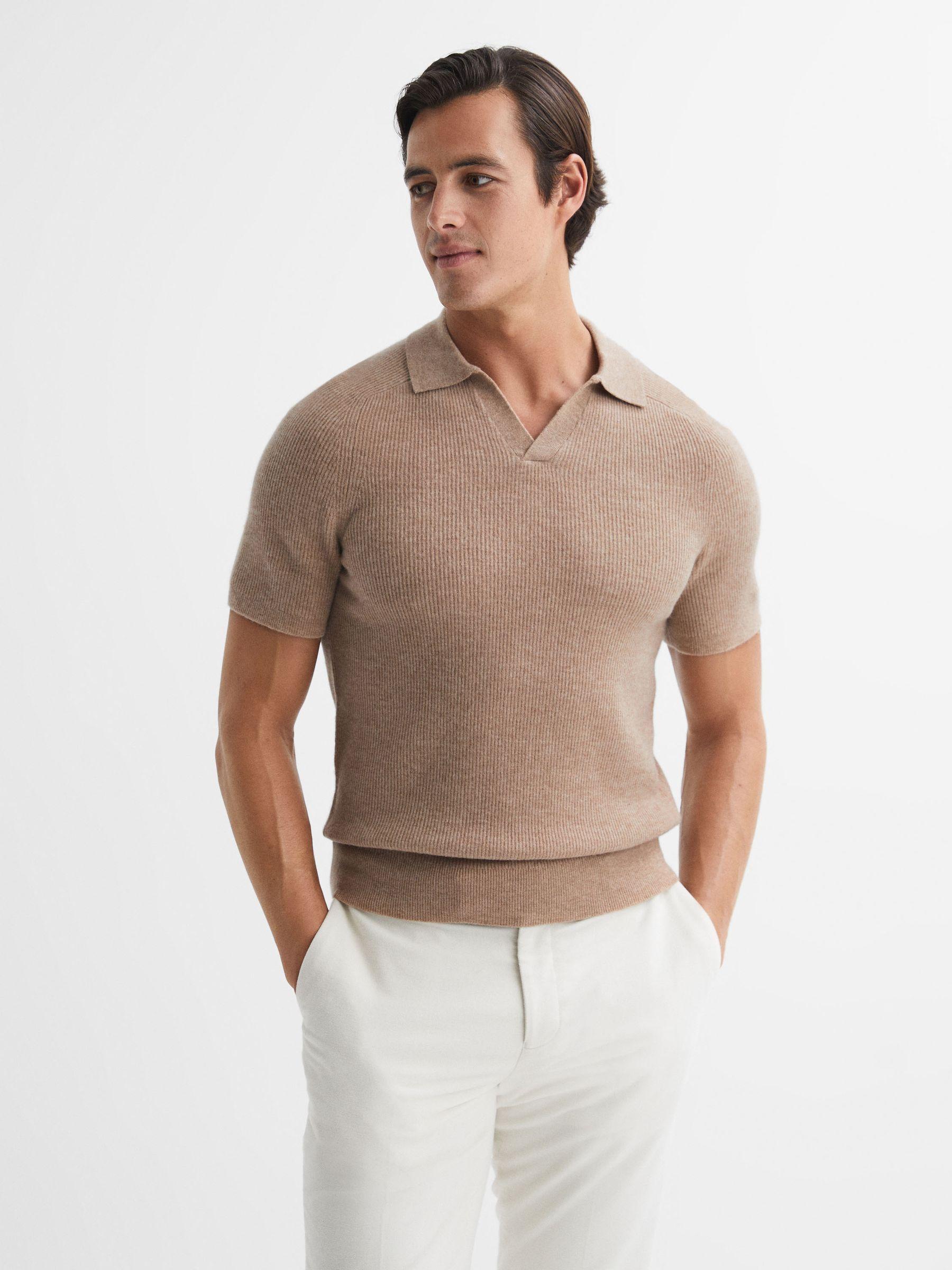 The Mortimer shirt in camel is a staple piece to have in your everyday rotation. Its familiar open-collar neckline lends it to smart-casual dress codes, whilst its 100% wool fabric sits effortlessly soft against the frame. A distinctively Reiss ribbed finish is chosen, perfect for adding texture to your edits. 100% wool. Ribbed fabrication. Open-collar neckline. Short sleeves. The model is wearing a size M. Measurements of model: Height 6ft 2" / 188cm.