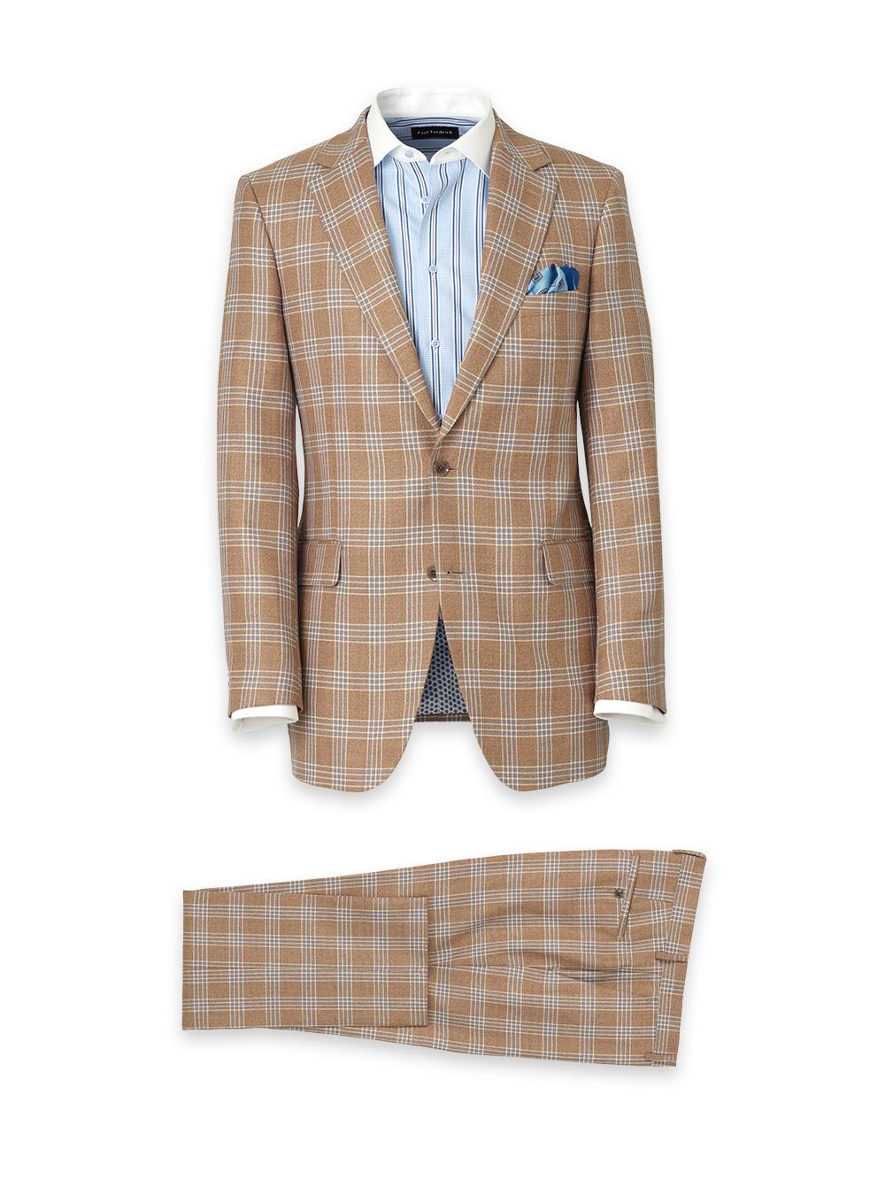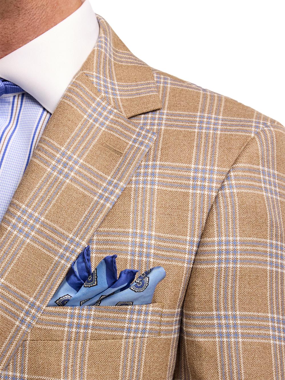 FeaturesJacket Two-button Closure, Side Vent, Notch Lapel Fused Construction, Comfort Stretch Armhole Fully Lined With Straight Facing Straight Flap Pockets, Welt Breast Pocket Pant Lined To The Knee Unhemmed French Fly Square Extended Tab Hook & Eye Closure Front Quarter Top Pockets Bluff Edge, Back Button-thru Welt Pockets Content & Care 55% Wool 30% Viscose 15% Ramie Dry Clean Only Imported Style# RPW200J, RPW002T