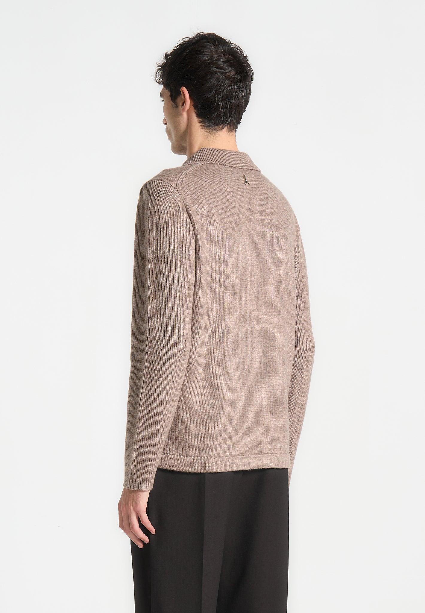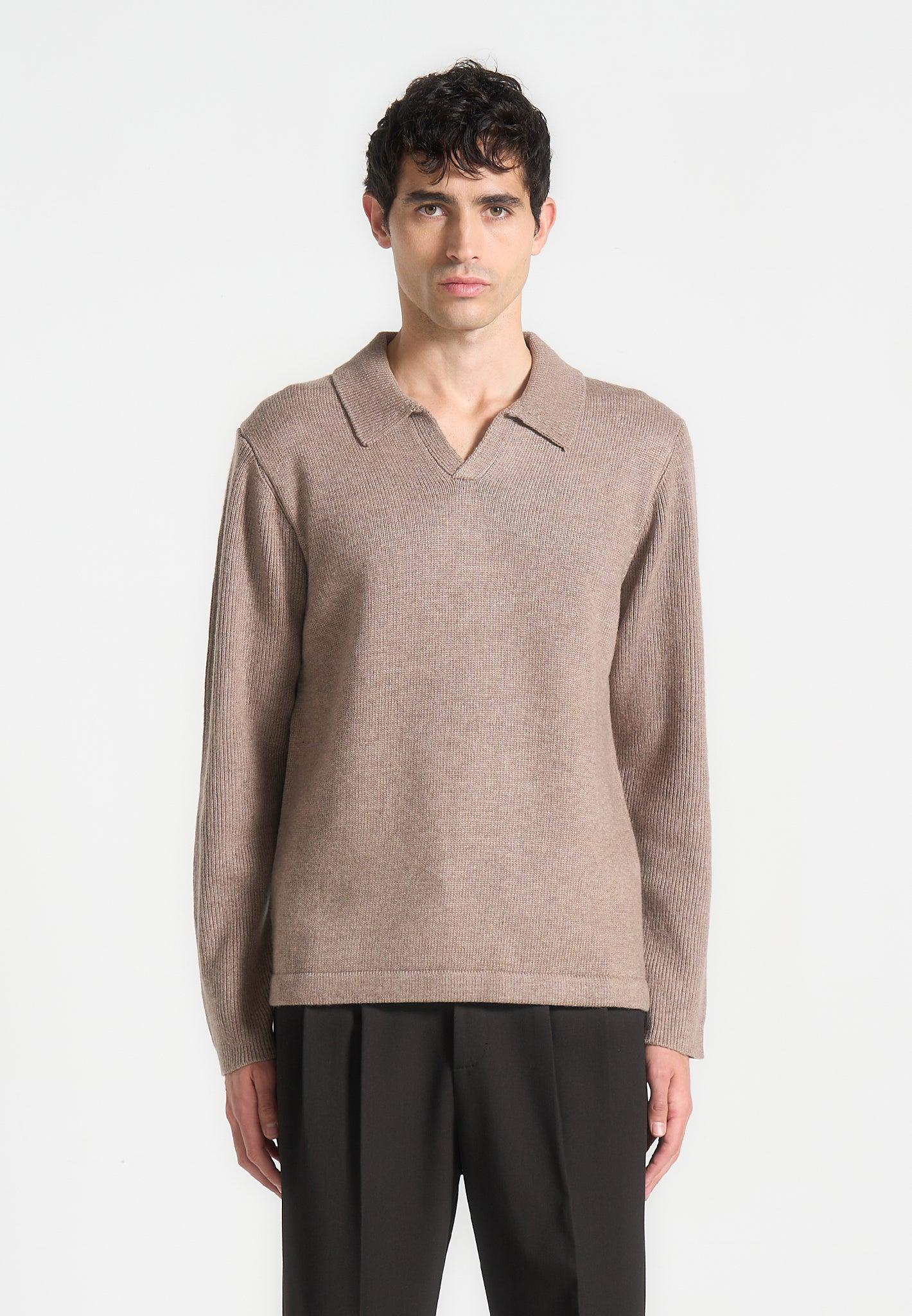 This Wool Blend Knit Revere Long Sleeve Jumper is the perfect addition to your capsule wardrobe. Its Wool Blend ensures comfort and durability, making it the ideal garment for any winter day. Regular Fit Polo Jumper Silhouette Revere Collar 3D Black Manière De Voir Text Plaque 5% Wool, 55% Nylon, 40% AcrylicAlways check the care label for wash instructions.