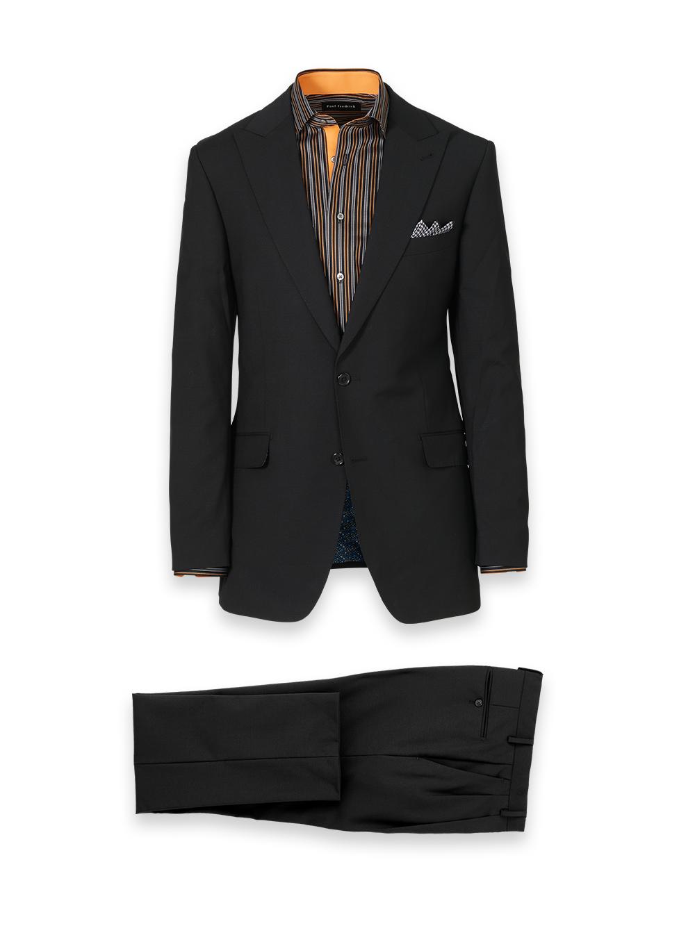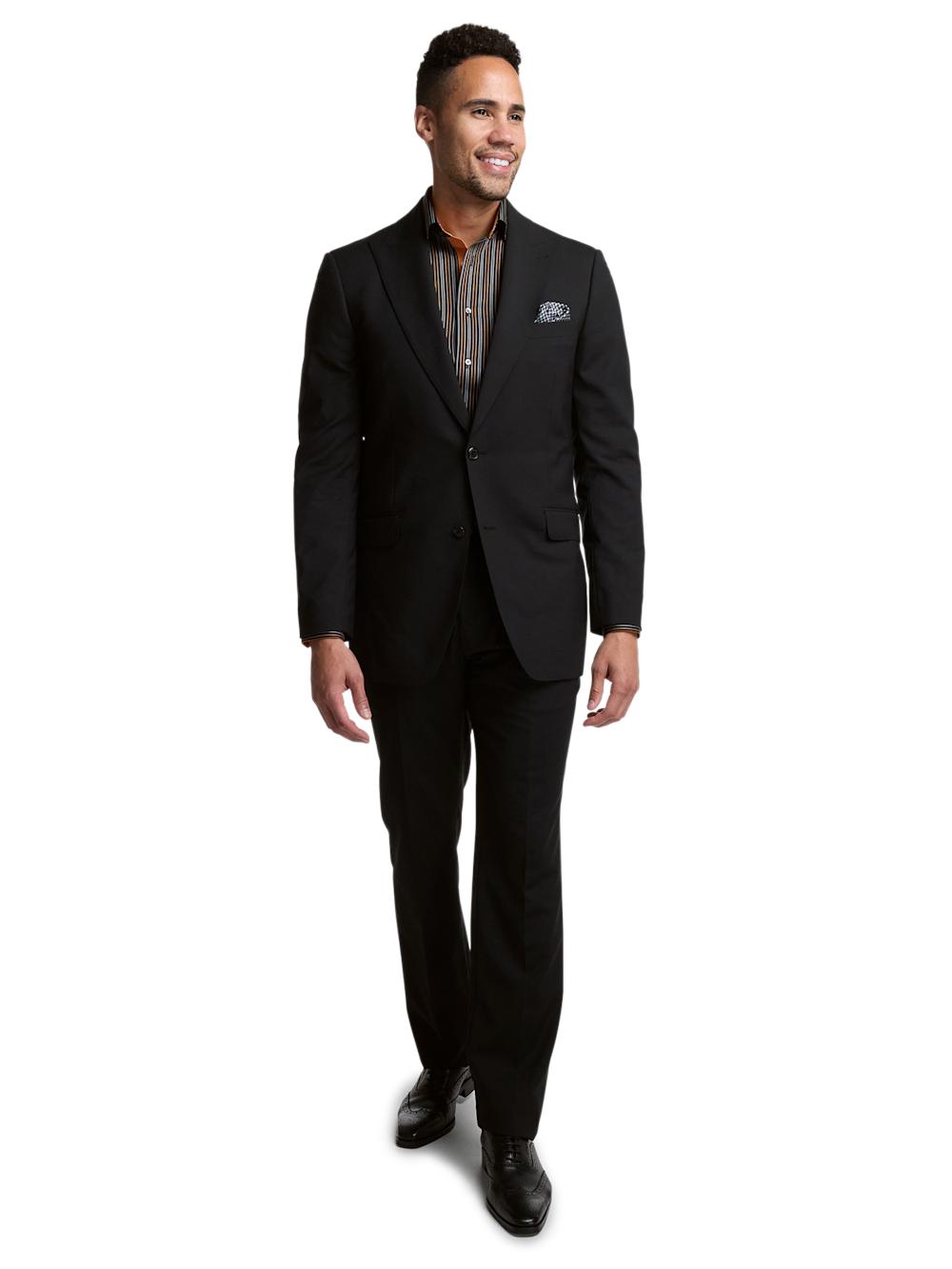 FeaturesJacket Two-button Closure, Side Vent, Peak Lapel Comfort Stretch Armhole Fully Lined With Straight Facing Two Angled Flap Besom Pockets, Welt Breast Pocket, Three Inside Pockets Pant Lined To The Knee Unhemmed French Fly With Extended Tab Closure Front Quarter Top Pockets, Back Button-thru Besom Pockets (Pleated Front) Front Quarter Top Pockets, Back Button-thru Welt Pockets (Flat Front) Content & Care 96% Wool / 4% Spandex Dry Clean Only Imported Style# RMT800J, RMT008T, RMT800T