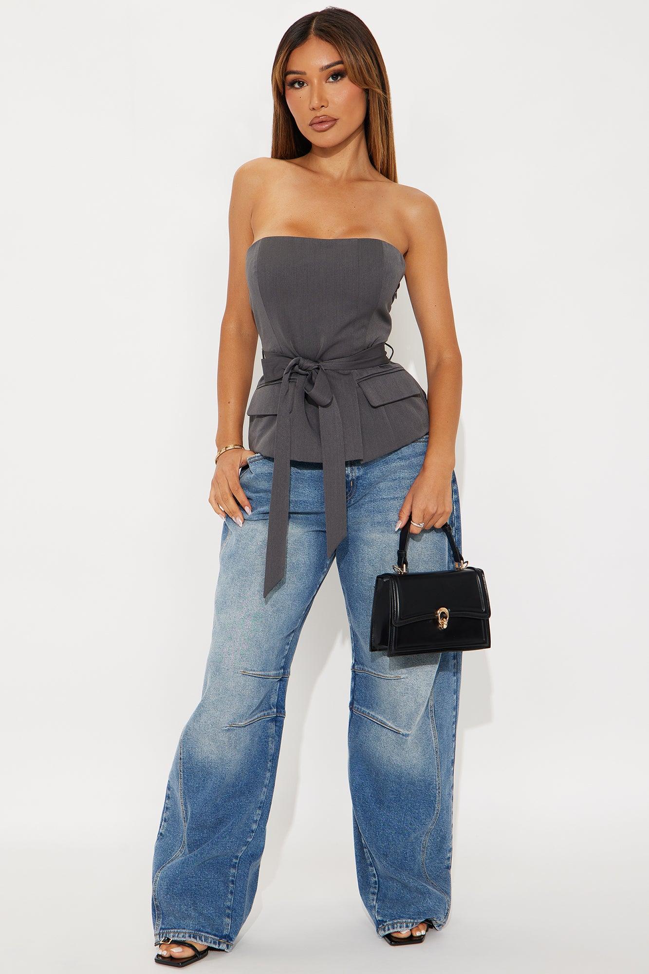 Work Behavior Tie Front Tube Top - Charcoal Female