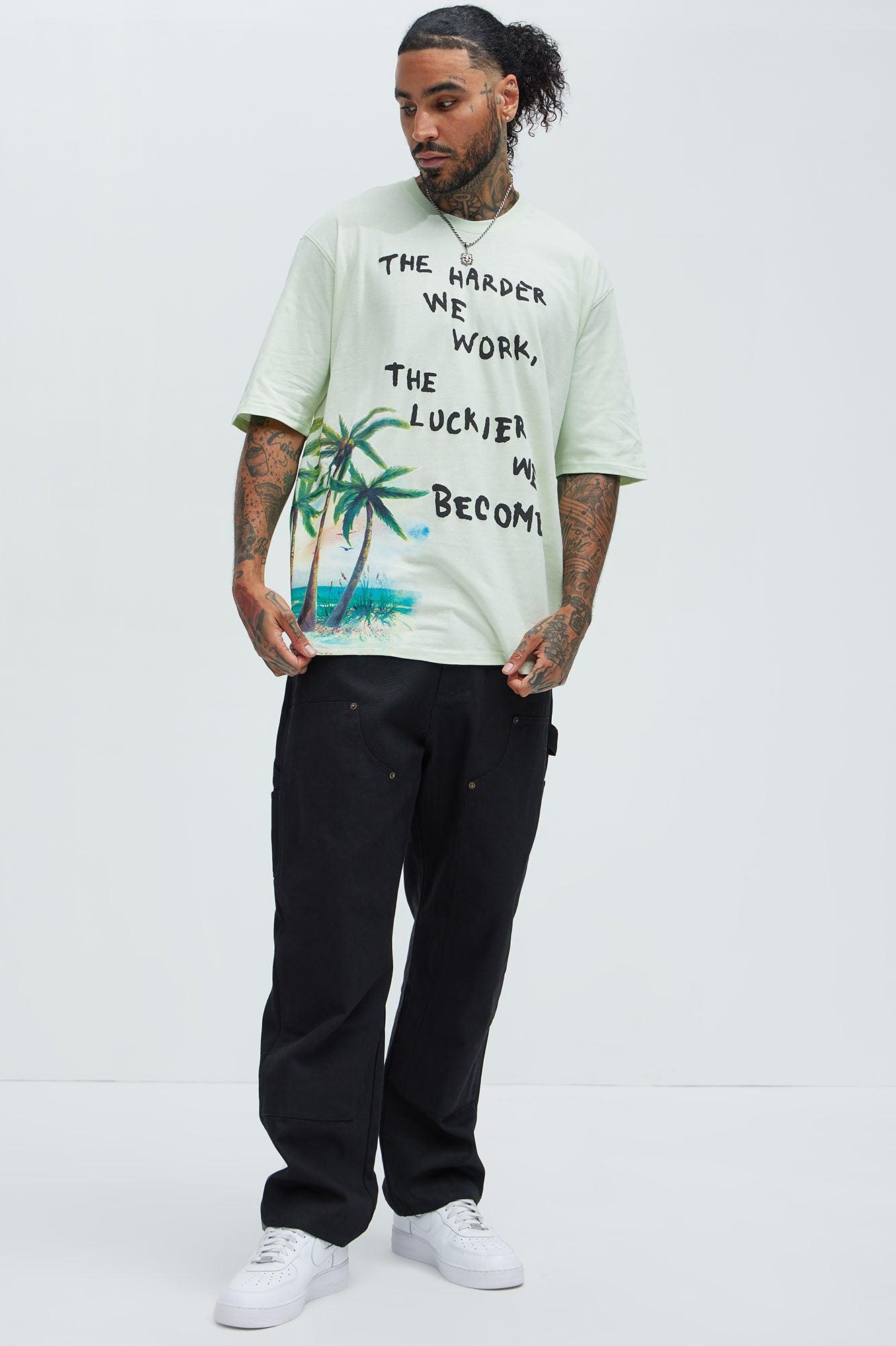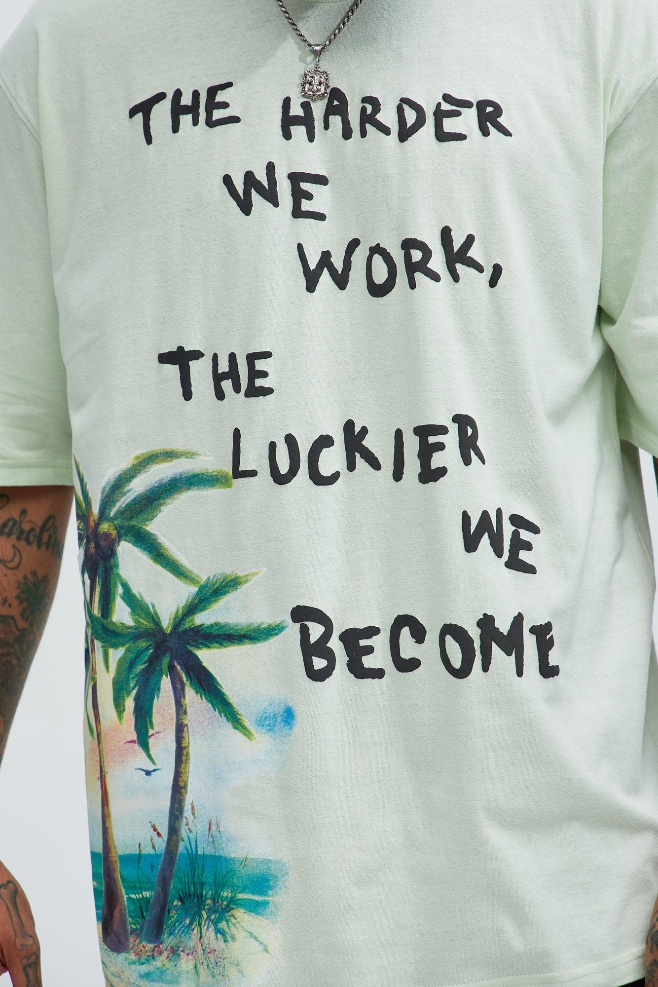 Work Harder Get Luckier Oversized Short Sleeve Tee - Green