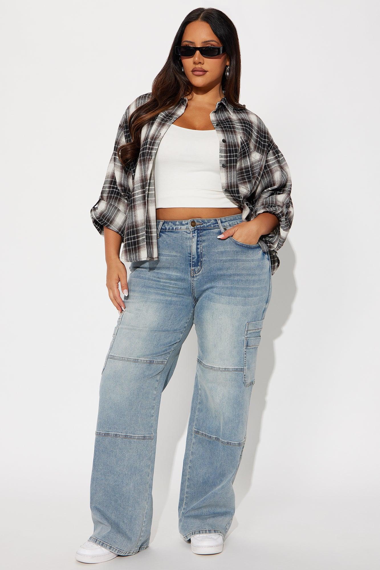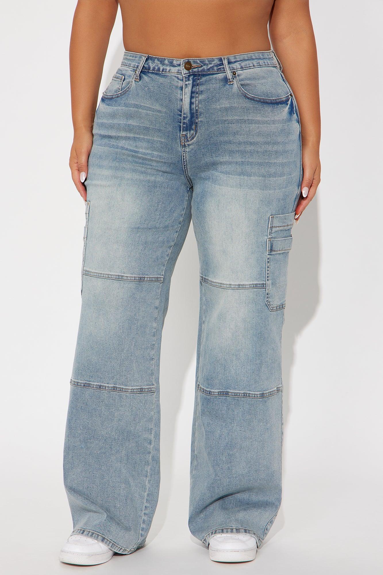 Available In Light Wash. Wide Leg Jean 7 Pocket Cargo Pockets 10.5" Rise 33" Inseam Medium Stretch Self: 72% Cotton 24.5% Polyester 2.5% Viscose 1% Spandex Imported