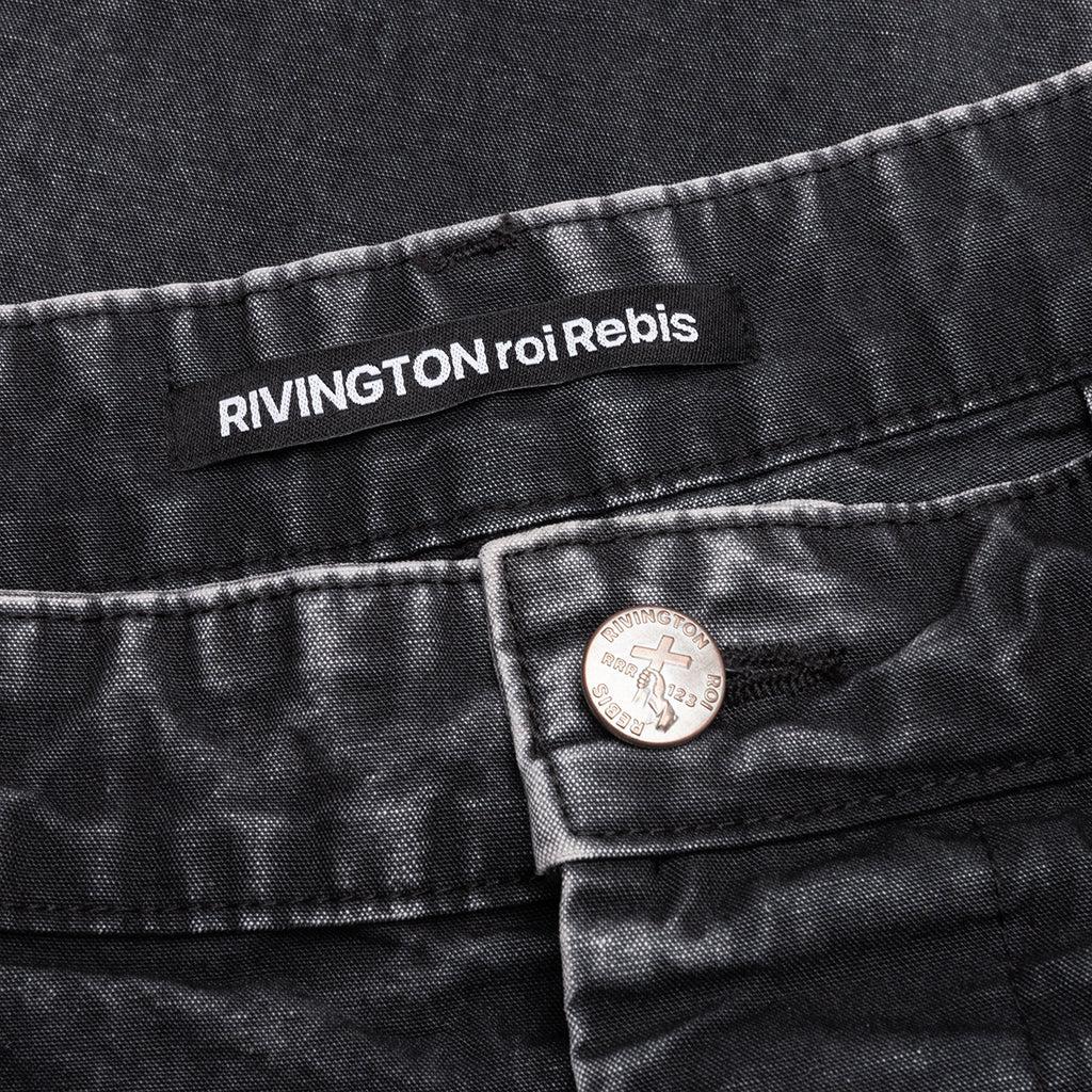 The Working Man Penta Pant in Washed Black from RIVINGTON roi Rebis add rugged utility to any wardrobe. Consisting of Japanese Canvas, while also being crafted of cotton to provide both comfort and style with relaxed yet structured fit. Constructed with button fly closure and four-pocket styling, complemented by elasticized back pockets and cuffs. RIVINGTON roi Rebis logo patches on the front complete the look. 100% cotton Japanese Canvas Belt loops RIVINGTON roi Rebis logo patches on front Button fly closure Four-pocket construction Elastic cuff Elasticized back pockets Style No: PNTP-PA08-WBLK PNTP PA08 WASH