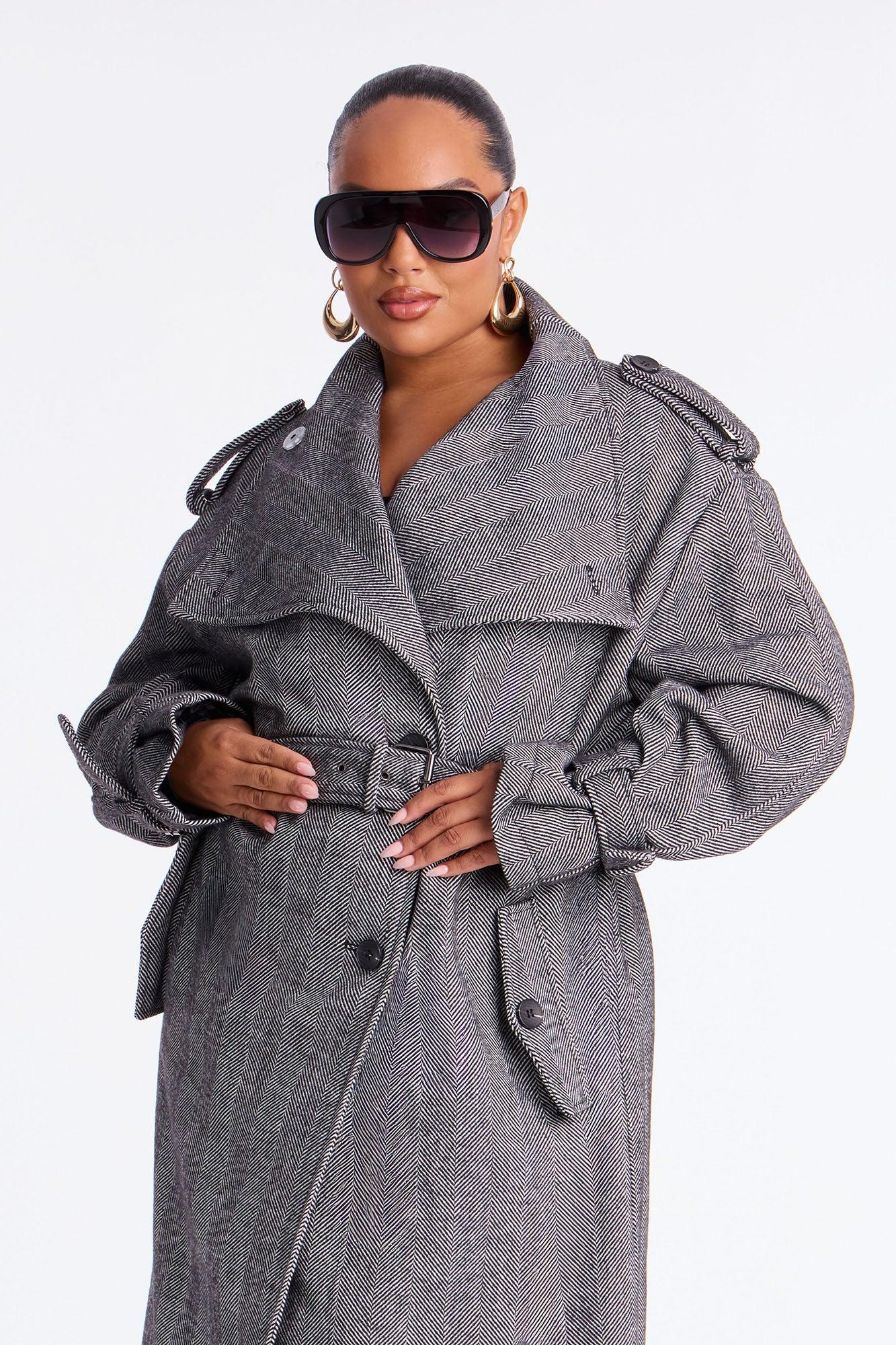 Available In Black/combo. Trench Coat Fold Over Collar Long Sleeves Belted Pockets Button Closure Lined Self: 96% Polyester 4% Spandex Lining: 100% Polyester Imported California Proposition 65WARNING: Cancer and Reproductive Harm - www.P65Warnings.ca.gov.