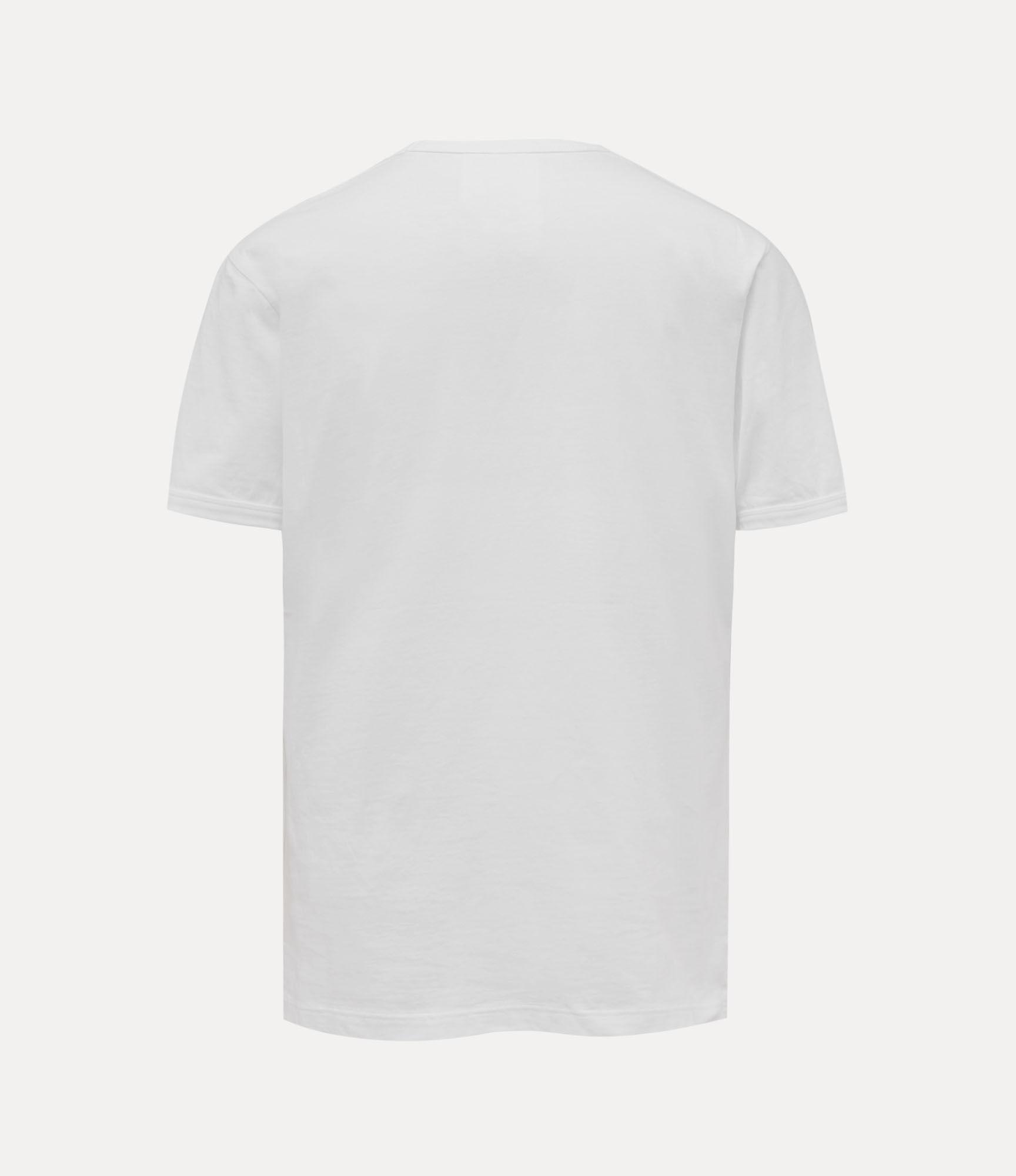 Our Worlds End Classic t-shirt is crafted from soft cotton, featuring short sleeves and a round neckline. The piece is adorned with the archive 'Arm and Cutlass' embroidery on the chest and the 'Own The World' artwork, a design from Vivienne’s playing cards that illustrates a culture-led economic strategy to save the world, urging us to reflect on our role in shaping the future.