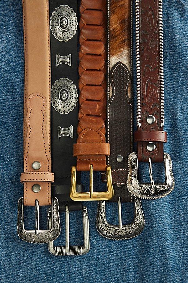Woven belt in a smooth leather fabrication. Adjustable length belt with a classic buckle closure. Features Woven leather belt Smooth leather belt Adjustable length Classic buckle Content + Care Leather Spot clean Imported Size Length Small: 38 Medium: 40 Large: 42 Woven Leather Belt in Brown, Mens at Urban Outfitters