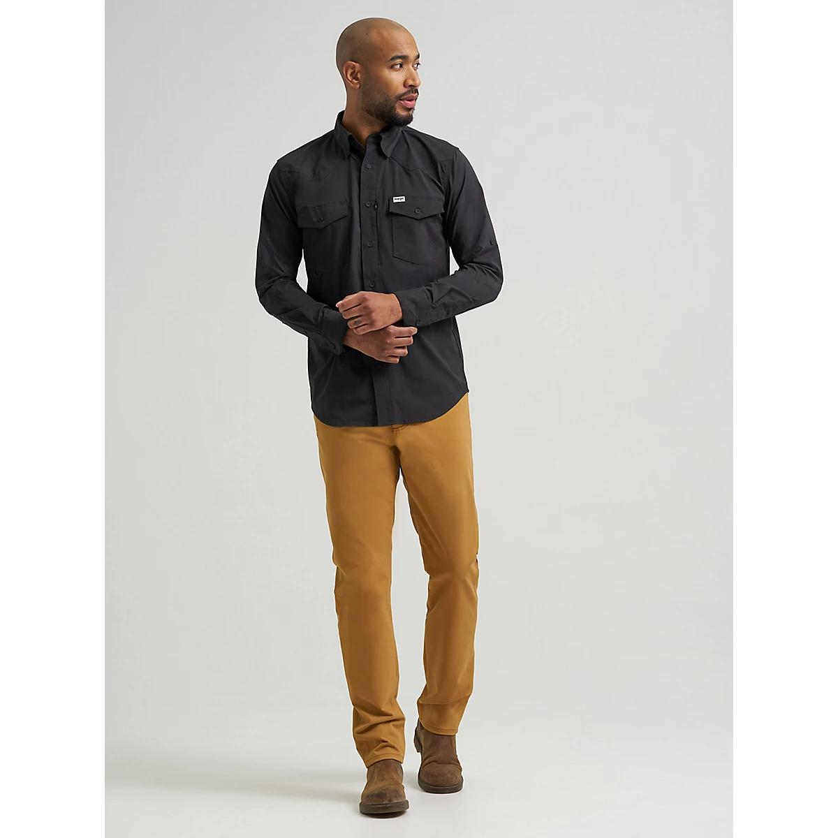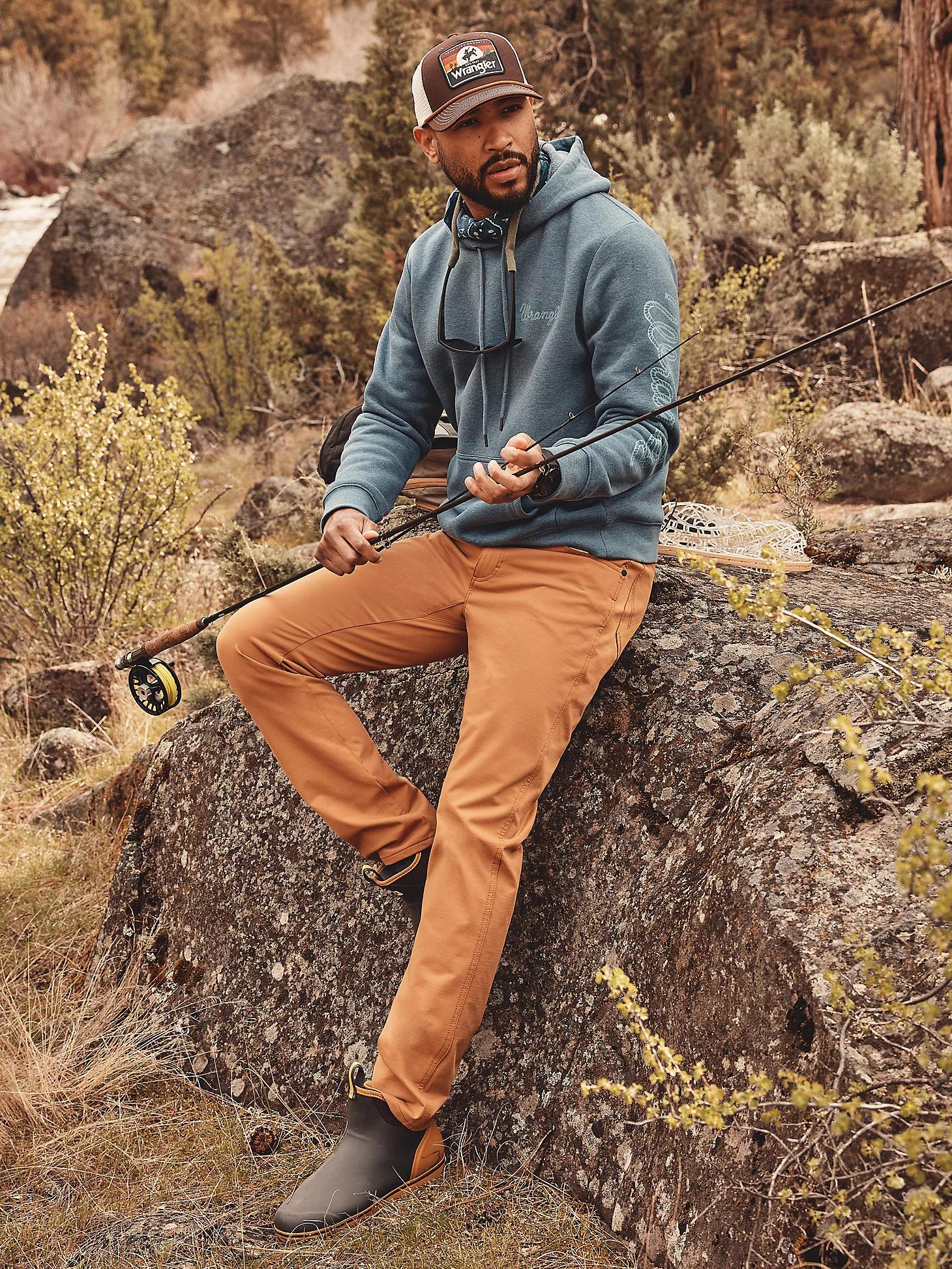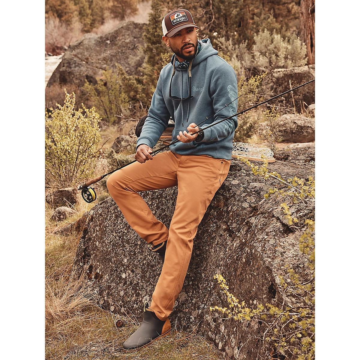 Want the look of your favorite jeans but in a style that can handle miles after mile on the trail? Meet the Wrangler ATG™ Men's Techno Knit 5 Pocket Pant. It’s crafted from a performance blend with cotton and added stretch to keep you comfortable no matter what the day throws your way. It features a regular fit and a tapered leg that can easily transition from trail to town for any occasion. These pants are finished with our signature five-pocket styling, the ‘W’ stitching, and a logo patch.