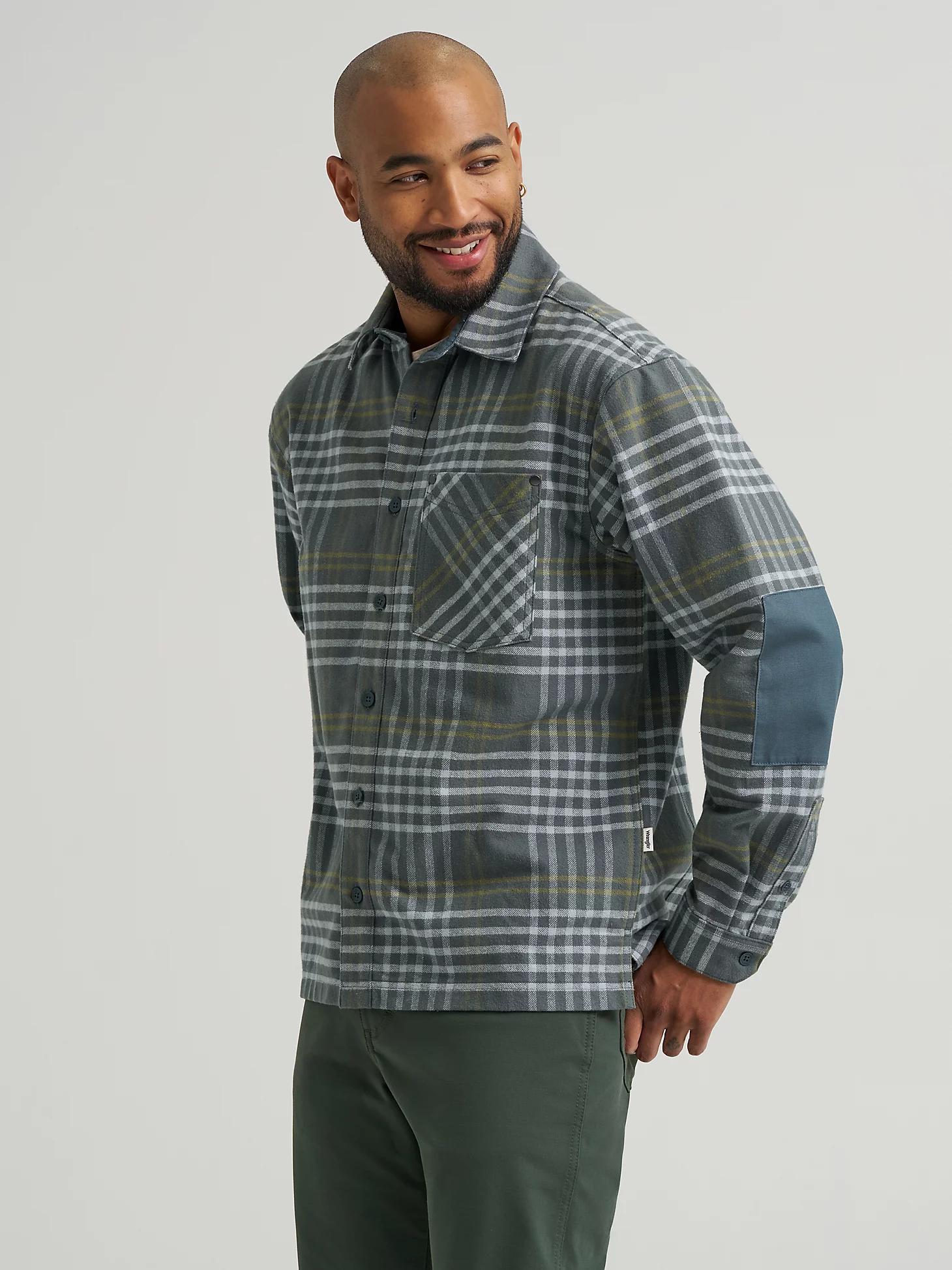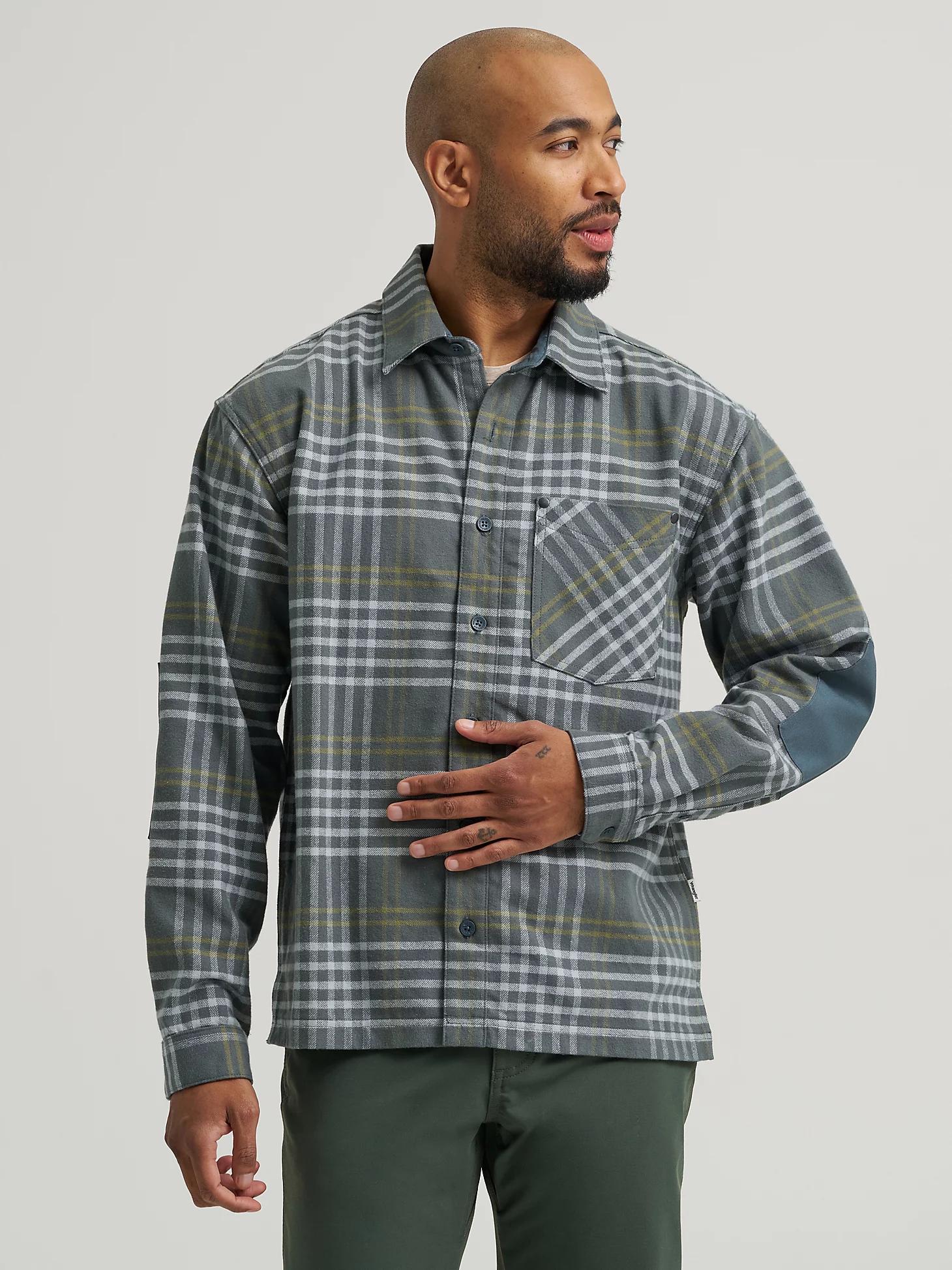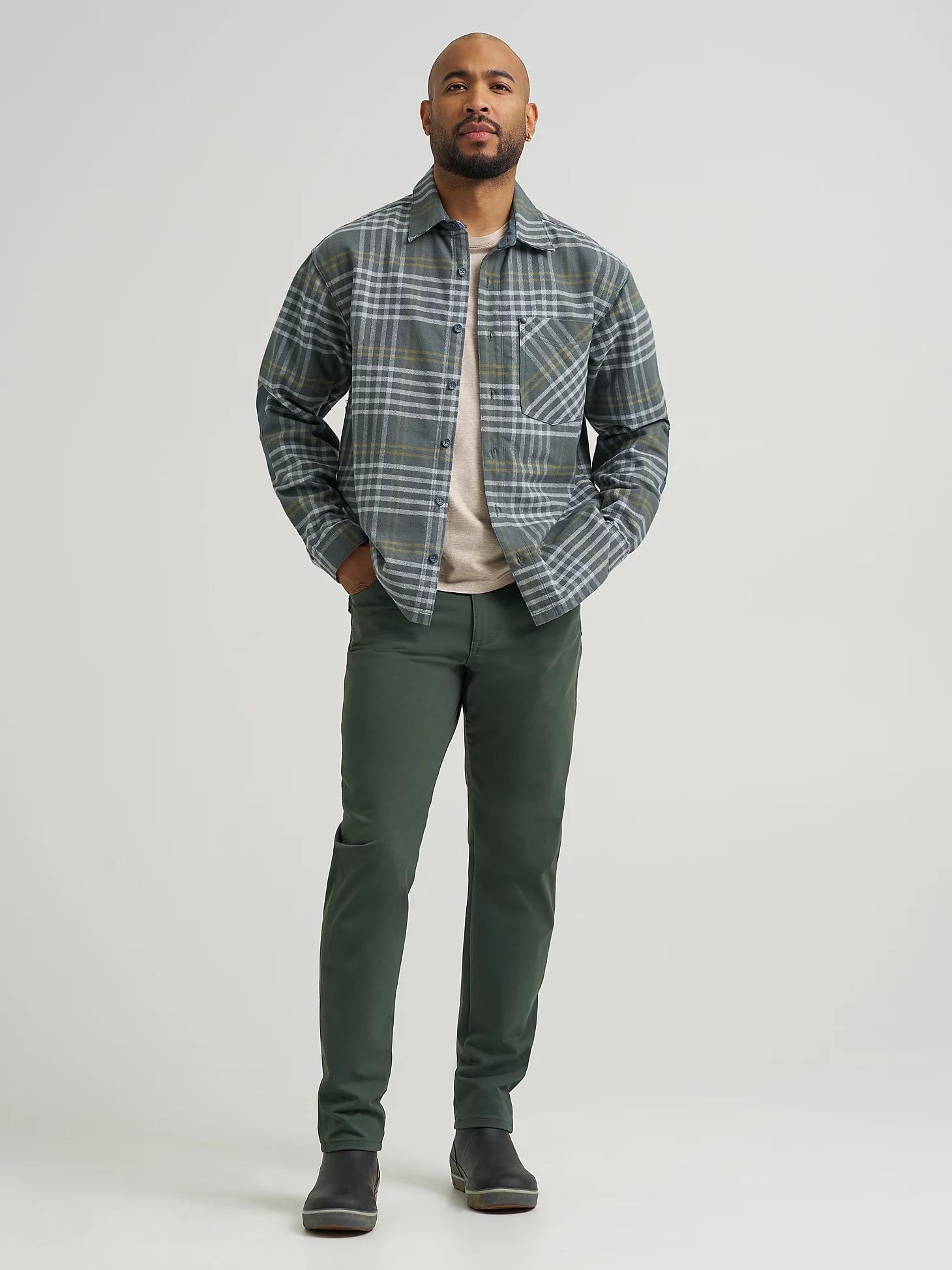 Made with cooler days in mind, the Wrangler ATG™ Men's Textured Flannel Shirt will keep you warm without holding you back. It’s crafted from cotton for softness and comfort, with a relaxed fit for extra room and effortless layering as you transition between seasons. This classic collared shirt comes with a Western back yoke, a single chest patch pocket on the wearer’s left side, a hidden zippered pocket on the inside, and elbow patches for added durability.