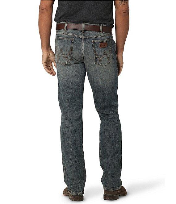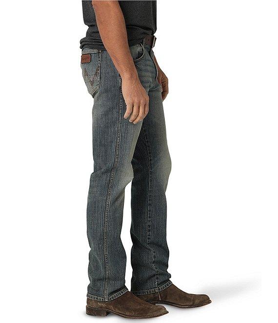From Wrangler® these jeans feature: 12.5-ounce stretch denim fabric Western-heritage design detail slim fit straight legs sits low on the waist two front pockets (one with coin pocket) two back pockets with ‘W’ stitching designed with a closer fit leg openings that fall comfortably over boots zippered fly with button closure belt loops cotton Machine wash/tumble dry Imported.