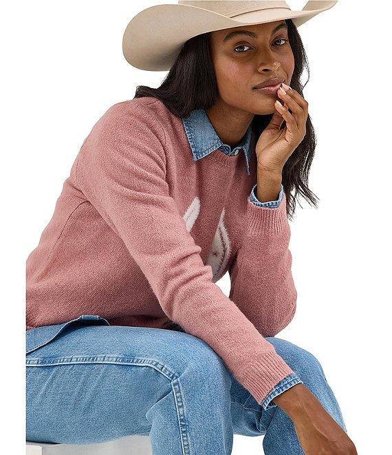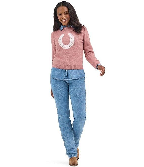 Wrangler® Retro® Horseshoe Long Sleeve Eyelash Yarn Sweater