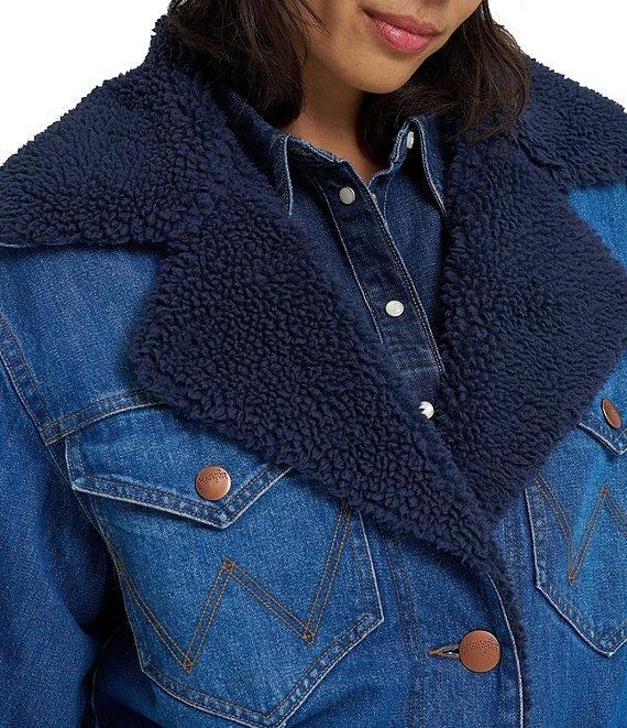 Wrangler Wrange Collared Long Sleeve Sherpa-Lined Denim Coat