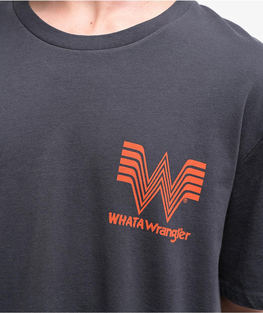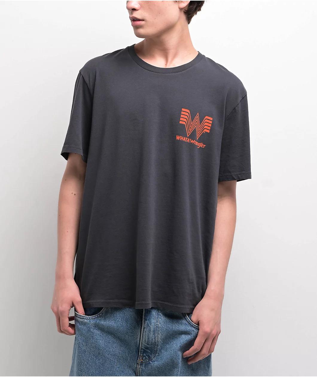 Wrangler Jeans collaborates with fast-food chain Whataburger to welcome the Ingredient t-shirt in a faded black colorway. Co-branded logos are printed on the left side of the chest, while a product description of the limited edition collaborative jea
