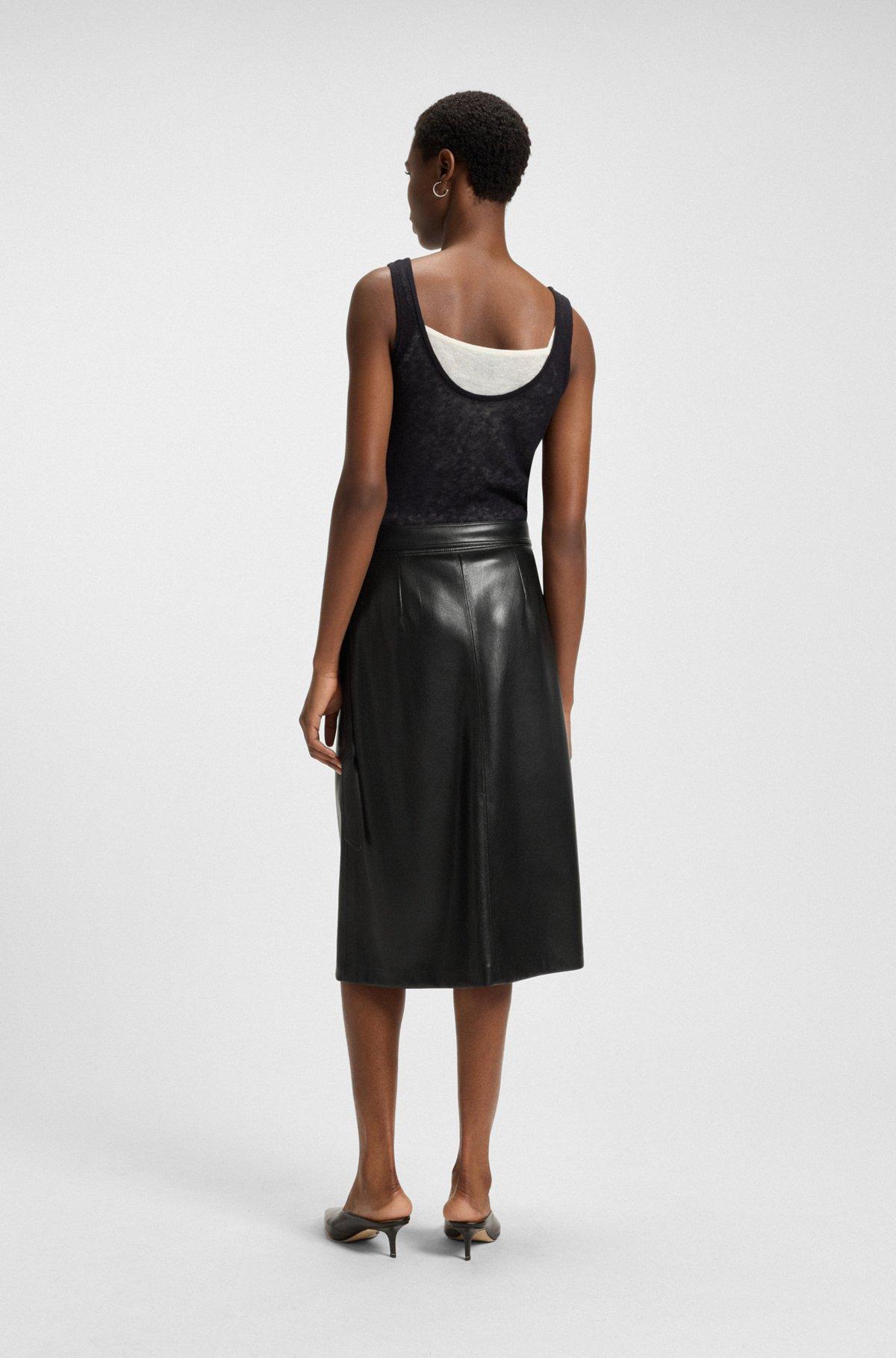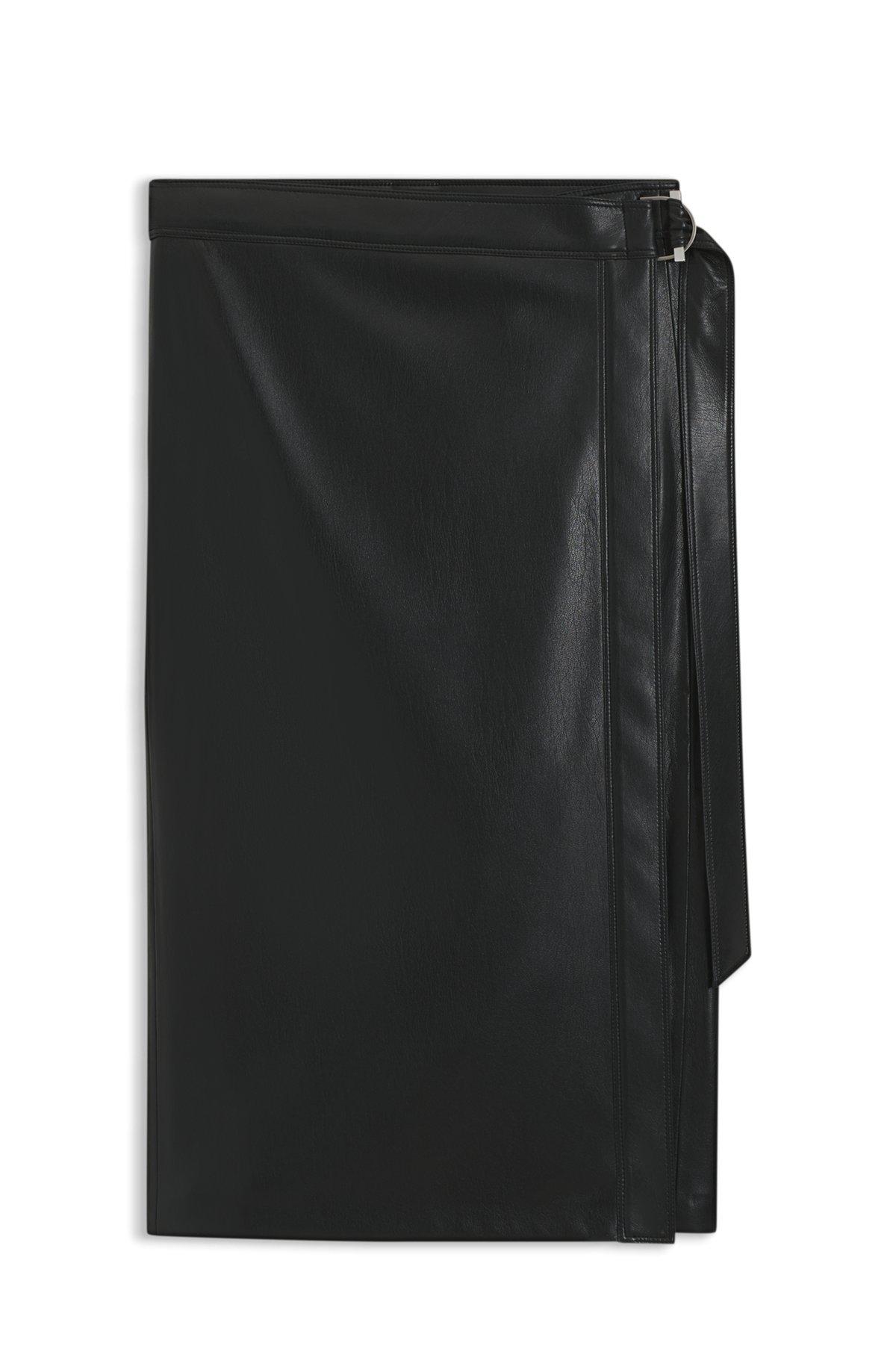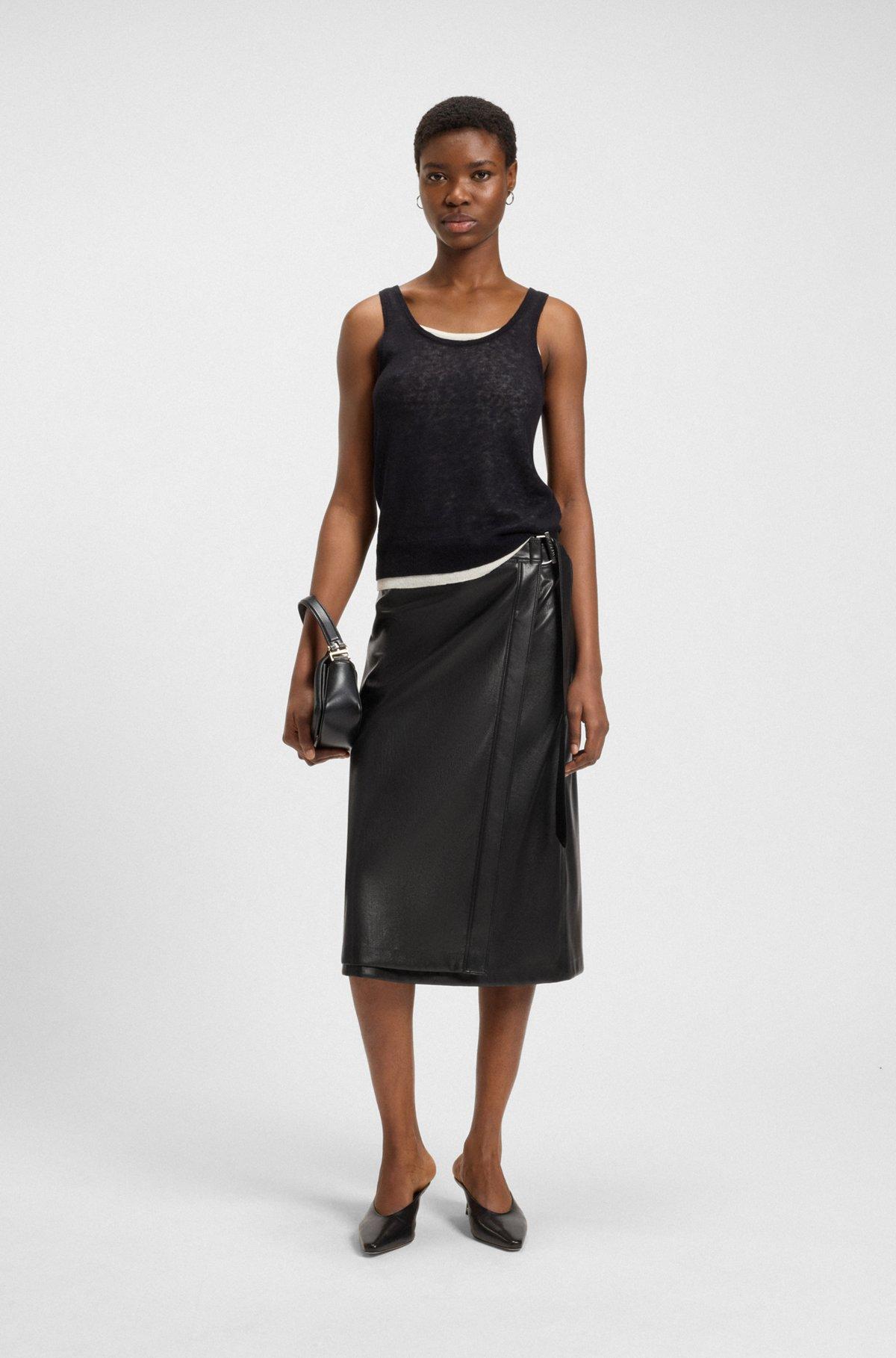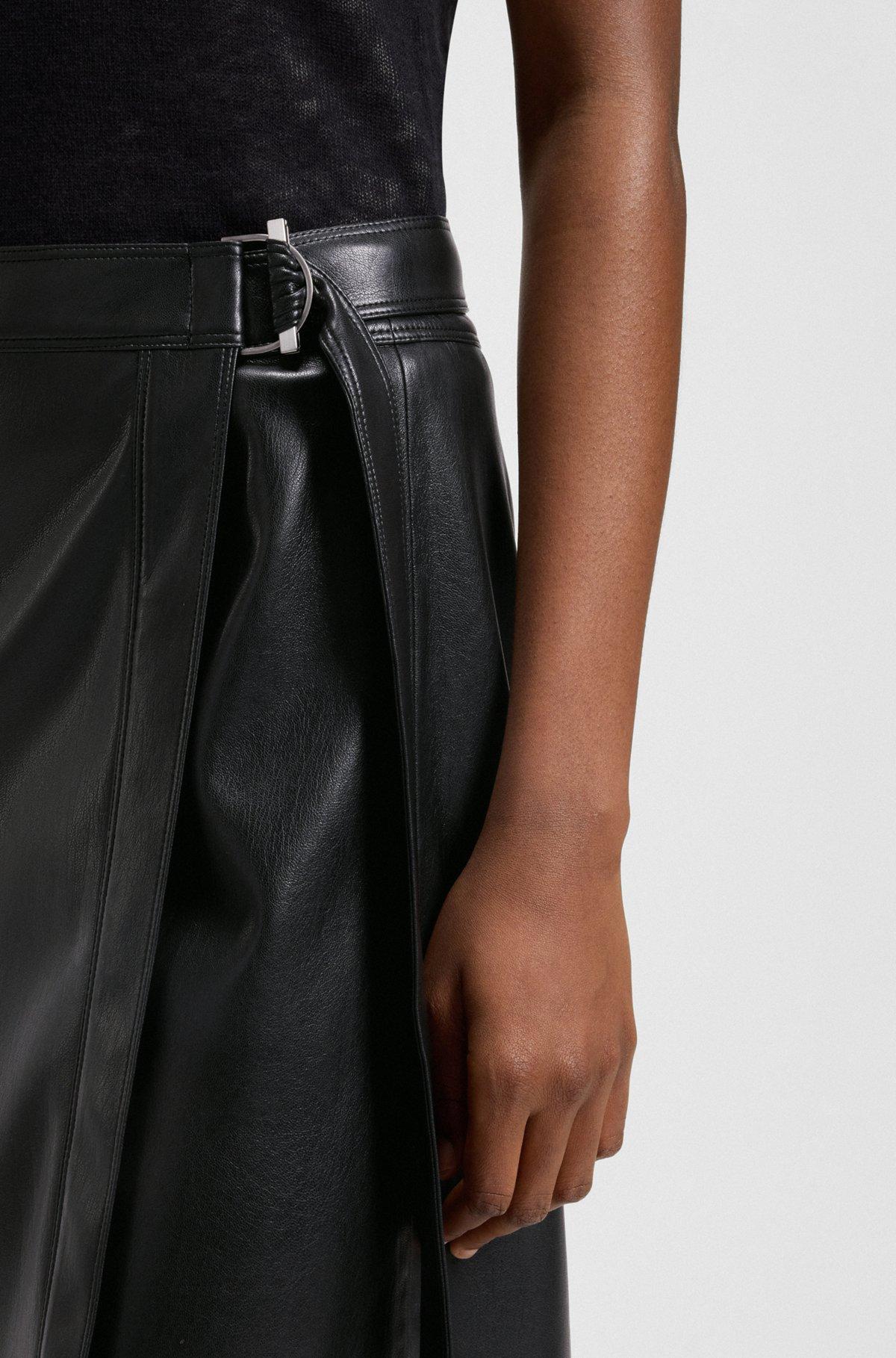 Build everyday looks on a rich foundation with this wrap-front BOSS Womenswear skirt. Crafted in synthetic coated fabric with a creative D-ring closure. Synthetic coated fabric, sometimes referred to as faux leather, is a fabric designed to resemble real leather, and/or display a matte, glossy, smooth, or textured, coated appearance.