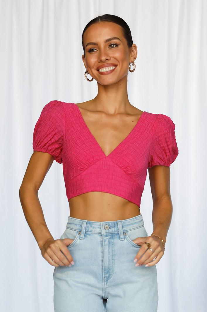 Length from shoulder to hem: 24cm. Lined. Cold hand wash only. Model is a standard XS and is wearing size XS. True to size. Lightweight, stretchy fabric. Nylon/Spandex. Wrap Me up in this adorable crop, and watch the likes roll in. Featuring short puffy sleeves, a deep V neckline with a wrap detail. Style yours with jeans and mules.