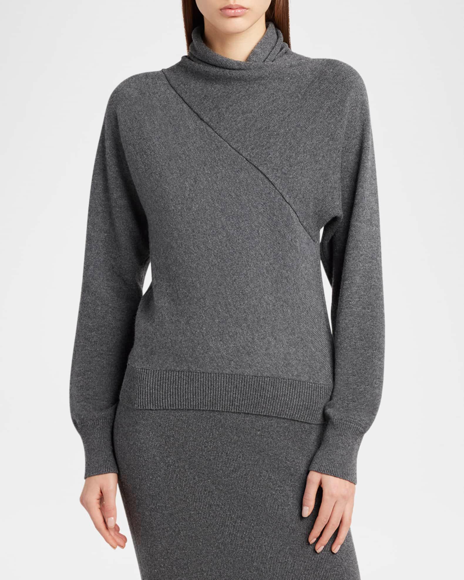 Wrap-Neck Fine Cashmere-Cotton Sweater