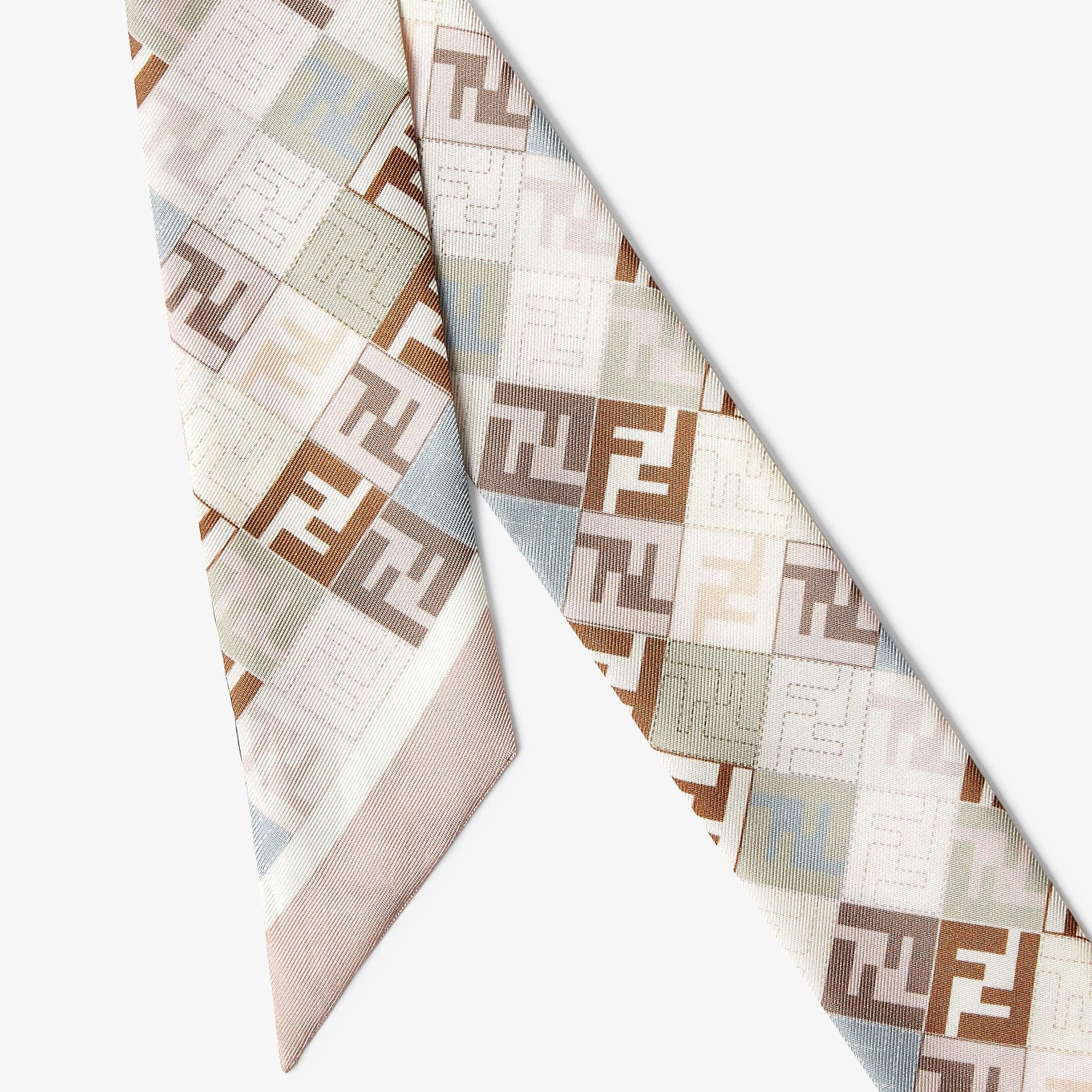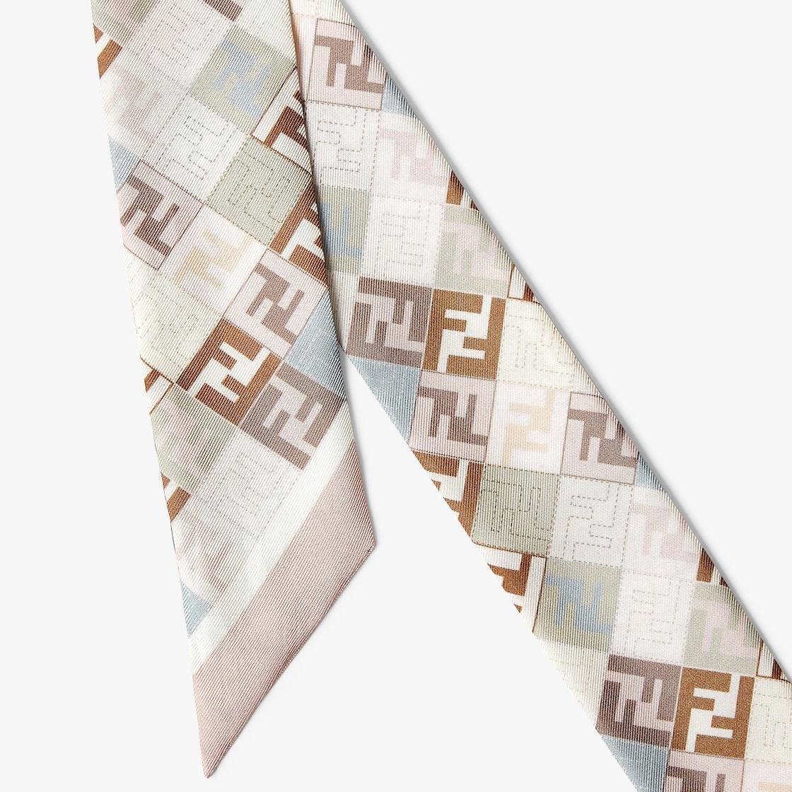 Two-sided wrappy. Can be worn around the neck, knotted at the wrist or used to accessorize a bag with a touch of color. Made of silk. Decorated with a pattern of geometric shapes and micro FF logos in colors such as light green, pink and beige, for a dynamic visual effect. Made in Italy