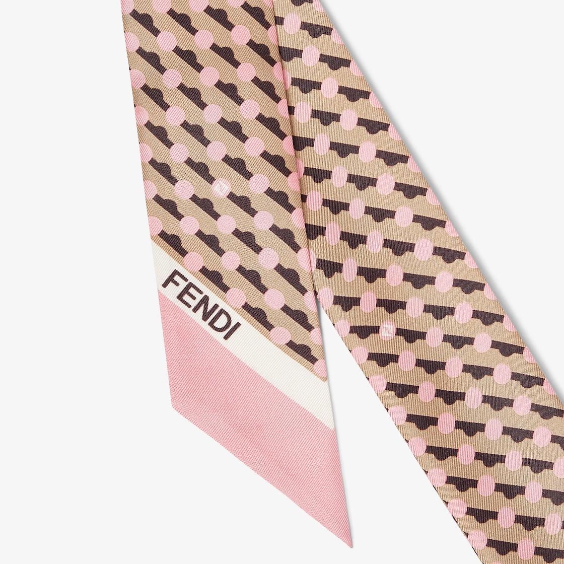 Two-sided wrappy. Can be worn around the neck, knotted at the wrist or used to accessorize a bag with a touch of color. Made of silk. Decorated with a Fendi Dots motif in pink, featuring micro polka dots interwoven with diagonal stripes and the FF logo. Finished with contrasting color block edges. Made in Italy