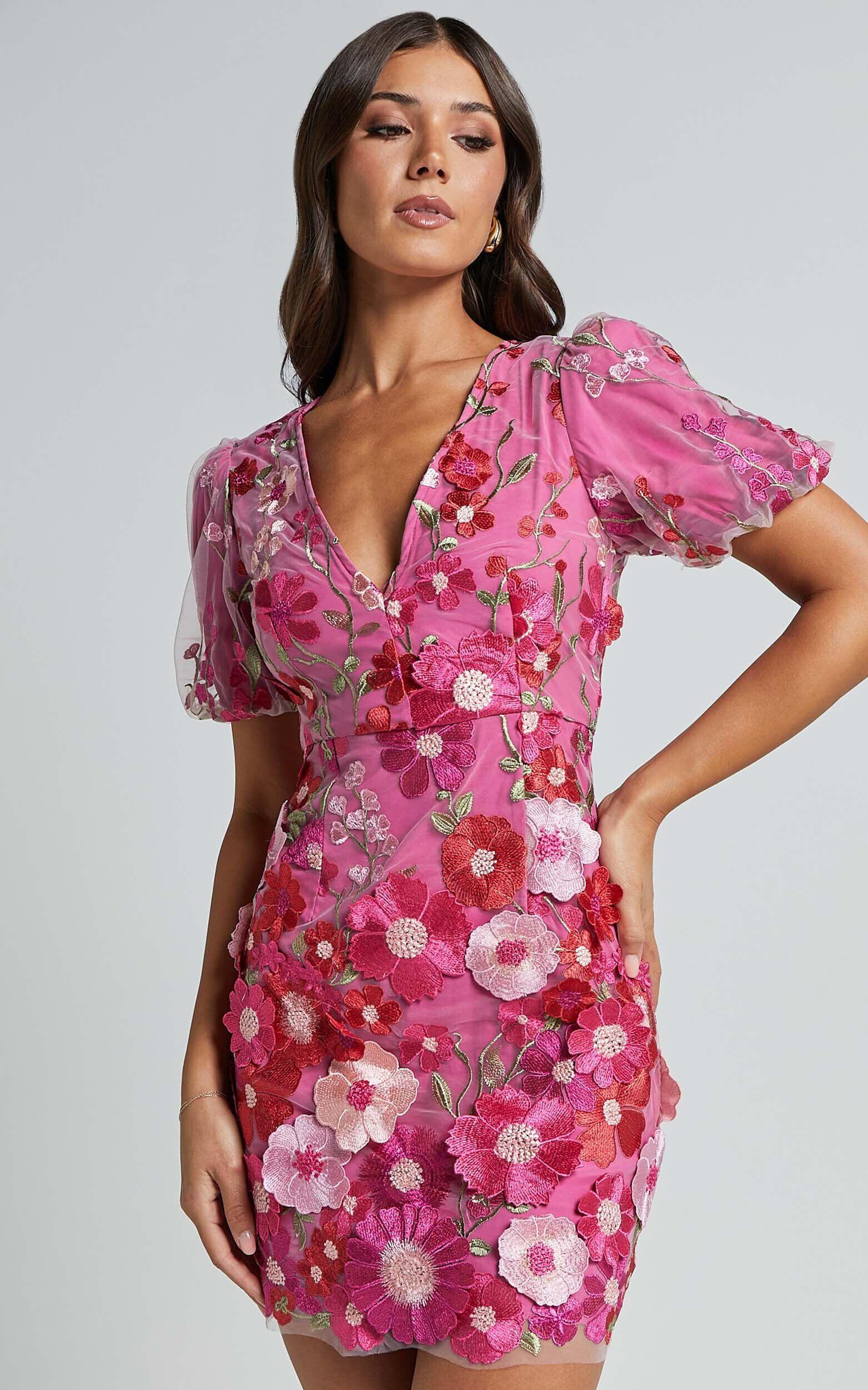 Turn heads at your next party with the Wren Mini Dress in Magenta. This stunning bodycon dress features a flattering V-neckline, short puff sleeves, and a vibrant 3D garden flowers print that is sure to make you stand out from the crowd. Made from high-quality polyester fabric, this dress hugs your curves in all the right places for a confident and empowering look. Perfect for any party day or night, this mini dress is a must-have addition to your wardrobe.Product Details:V-neck bodycon dressMini lengthShort sleevesMade of polyester fabricSuitable for parties and daytime eventsMaterial and Care100% PolyesterLow / No stretch
