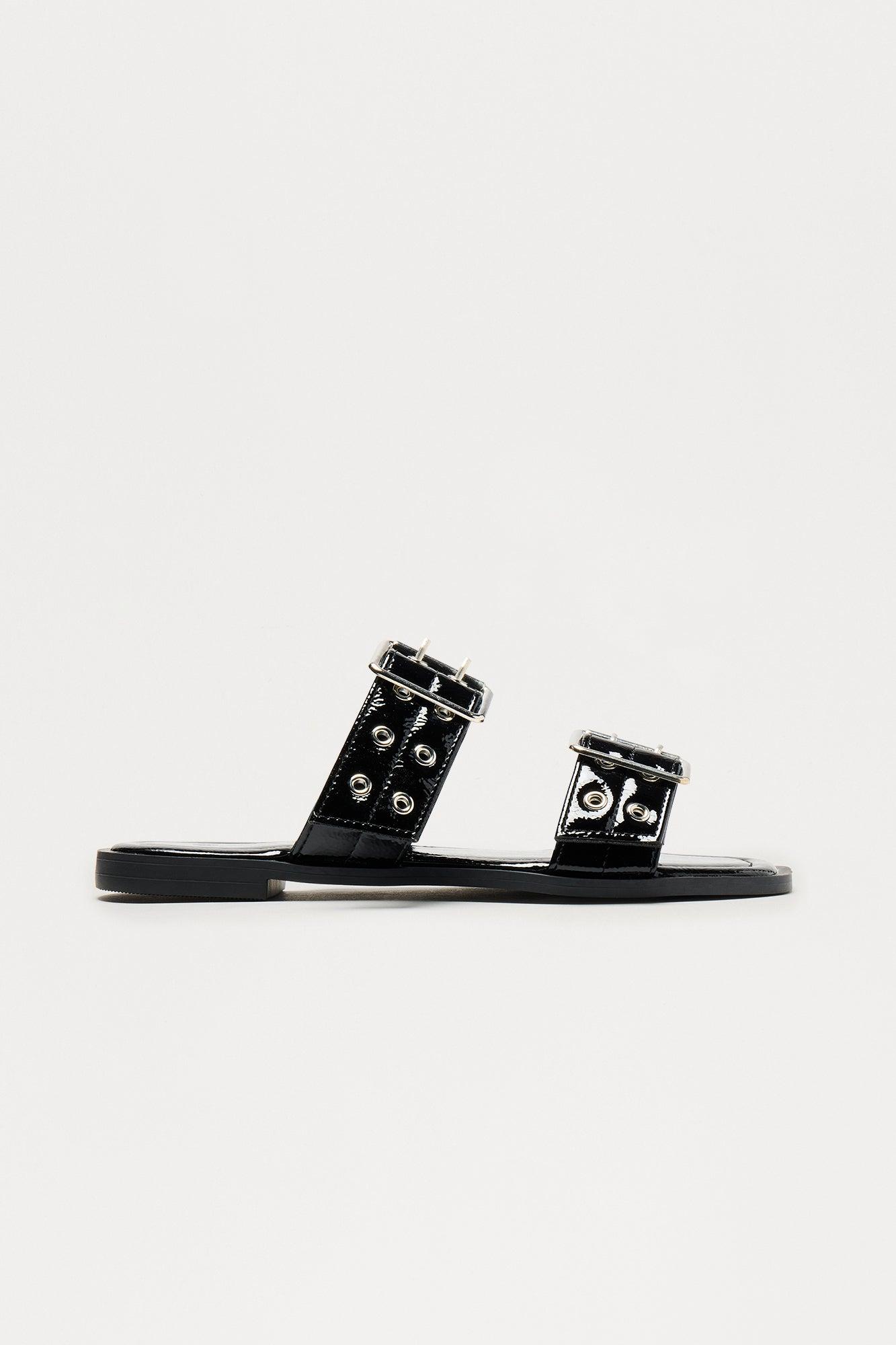 Wright Faux Patent Buckle Sandals - Black Female