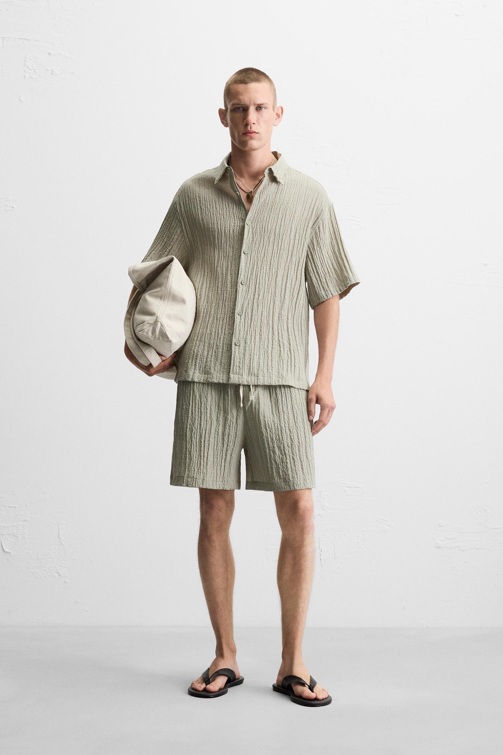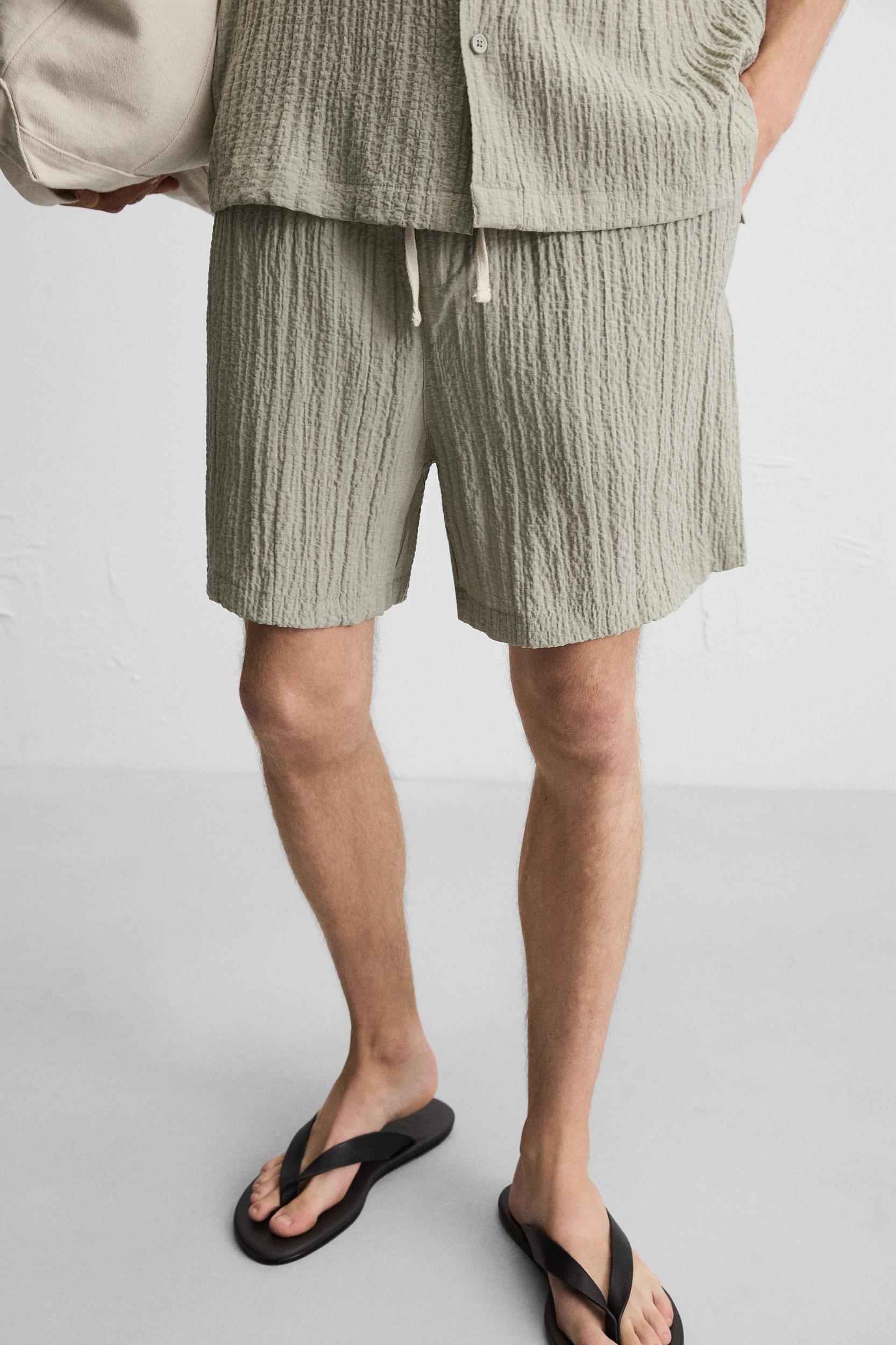 WRINKLED EFFECT JACQUARD BERMUDA SHORTS