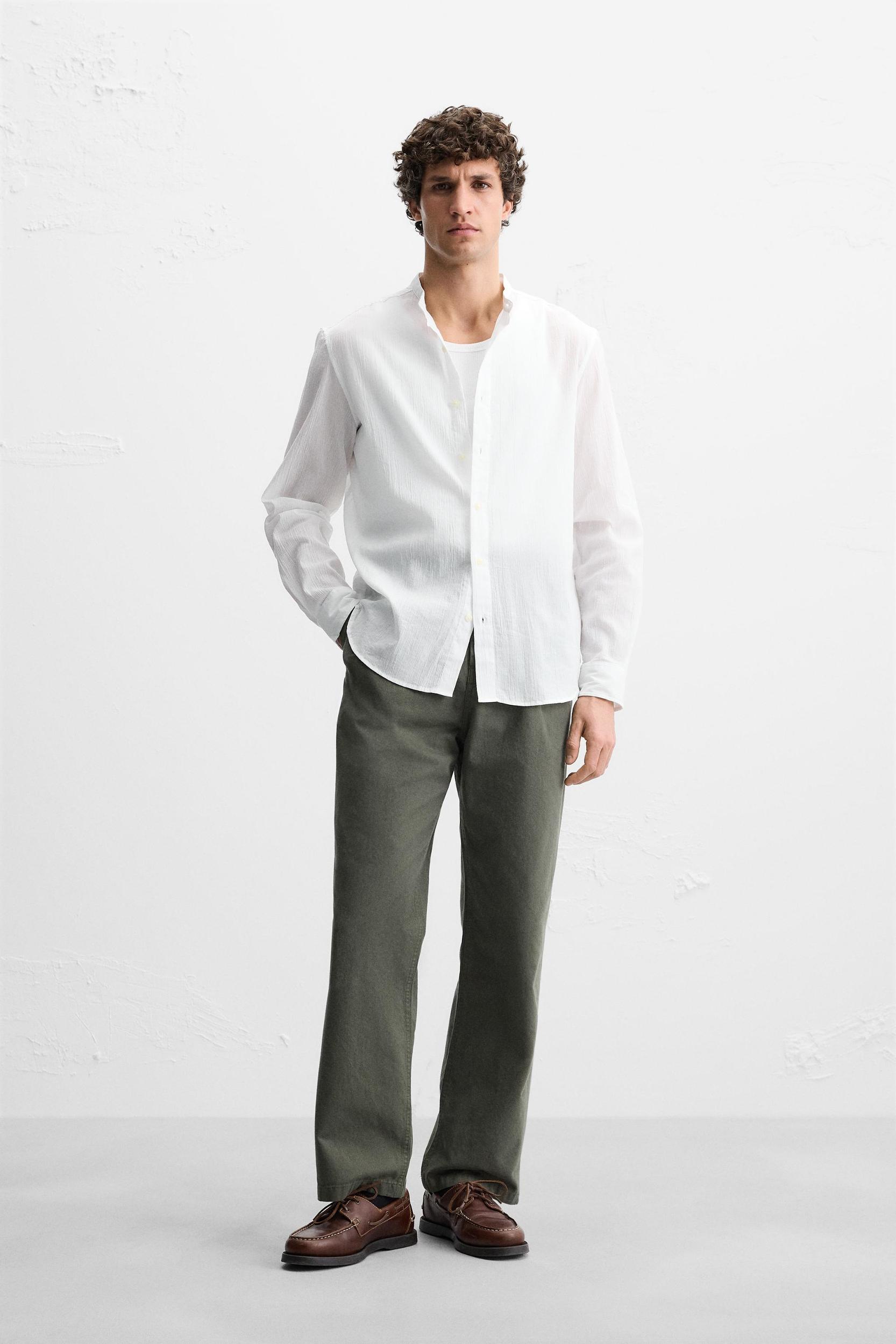 Mens Relaxed-Fit Crinkle Long-Sleeve Shirt