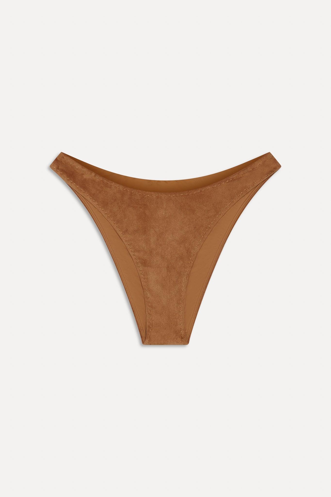 Every day feels like a getaway in the Dove bikini bottom. With its soft suede swim fabric, flattering cut, and classic coverage, this bikini bottom is your go-to for effortless beach style. Exclusively from the Bella Hadid x Frankies Bikinis collaboration. Details Figure enhancing high leg silhouette Designed in our softest and most luxurious suede swim fabric Special saddle stitch detailing Fabric 90% Polyester + 10% Spandex Model Size & Fit This style runs true to size Angela is wearing a size Small Height 5' 11" (180cm) Bust 33" (84), Waist 22” (56.5cm), Hips 34” (86.5cm)