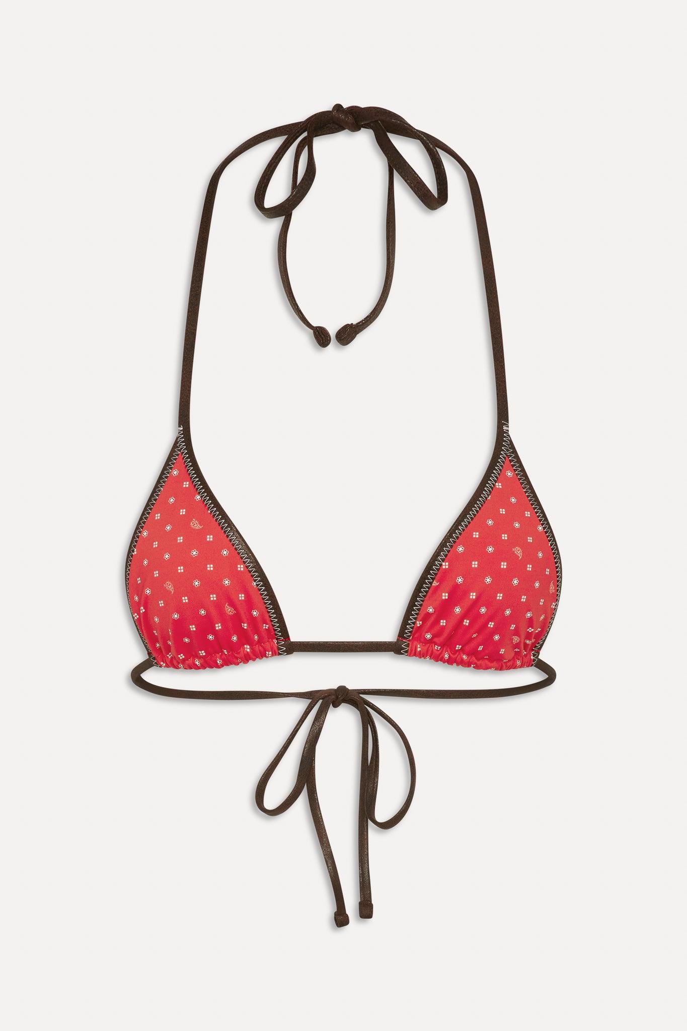If you're looking for a polka dot bikini top, you'll adore Paradise. This halter bikini top will be your newest Frankies favorite with its adjustable coverage. Exclusively from the Bella Hadid x Frankies Bikinis collaboration. Details Adjustable ties at the chest and neck Lined with a custom Bella Hadid x Frankies Bikinis bandana print. Fabric 80% Nylon + 20% Spandex Model Size & Fit This style runs true to size Anna is wearing a size Small Height 5' 10" (178cm) Bust 32" (81), Waist 23.5” (59.7cm), Hips 34.5” (87.6cm)
