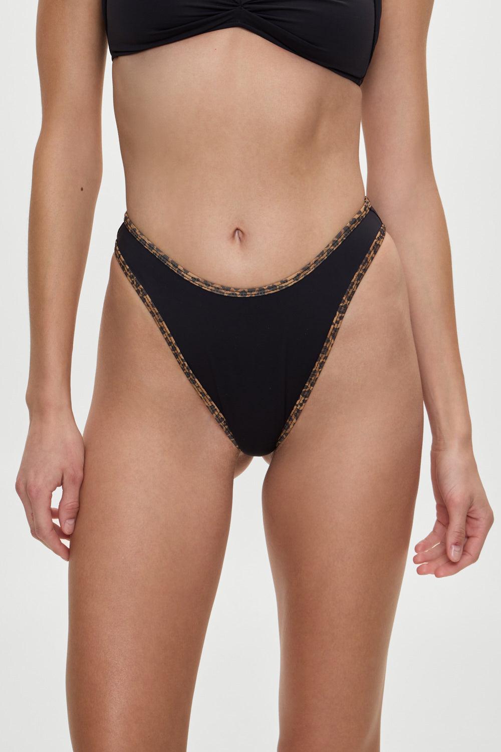The Presley high waisted bikini bottom is designed to flatter with its high rise fit and cheeky coverage. This bikini bottom is a must-have for mixing and matching. Exclusively from the Bella Hadid x Frankies Bikinis collaboration. Details Sits high on the hips Leopard print binding Designed in our signature soft swim fabric Fabric 80% Nylon + 20% Spandex Model Size & Fit This style runs true to size Tatiana is wearing a size x-large/Anna is wearing a size Small Height 5' 10" (178cm) Bust 32" (81), Waist 23.5” (59.7cm), Hips 34.5” (87.6cm)
